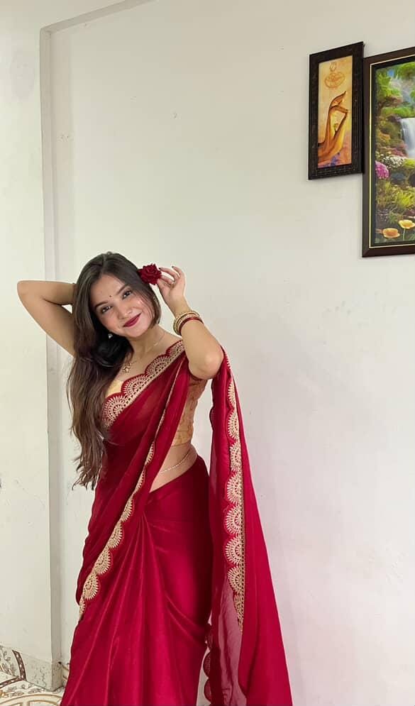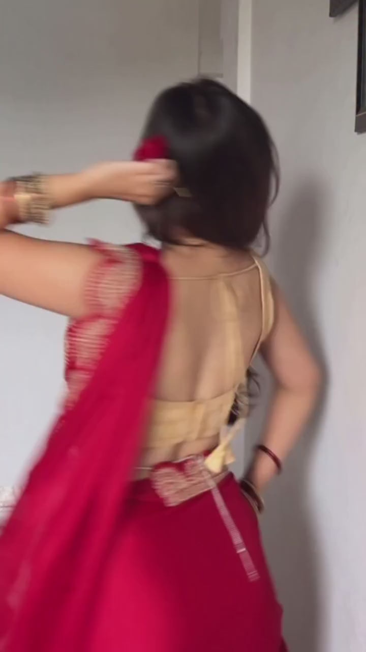 Red Ready To Wear Shimmer Nylon Silk Saree