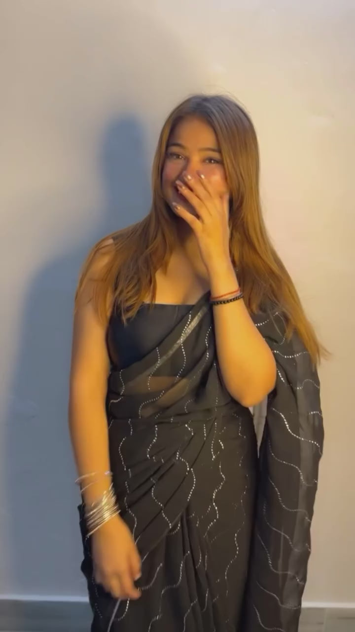 Black Ready To Wear Shimmer Nylon Silk Saree
