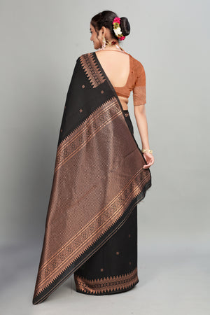 This soft Silk Blend saree features an elegant design with a rich pallu and intricate jacquard work throughout, enhancing its luxurious appeal. Complemented by an exclusive jacquard border blouse, it offers a sophisticated and cohesive look ideal for special occasions. The fine texture and detailed craftsmanship combine to provide both comfort and timeless style.