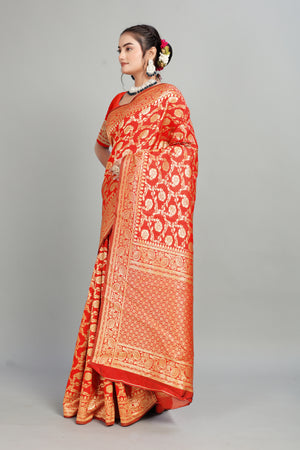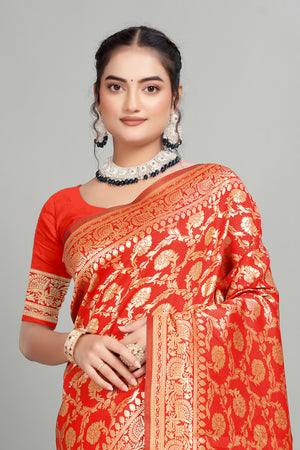 Experience elegance with this soft Silk Blend saree, featuring a beautiful rich pallu and intricate jacquard work throughout. The exclusive blouse complements the saree perfectly with its detailed jacquard border, adding a refined touch to your ensemble. Ideal for special occasions, this saree combines traditional craftsmanship with luxurious fabric for a graceful and sophisticated look.