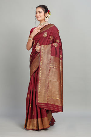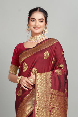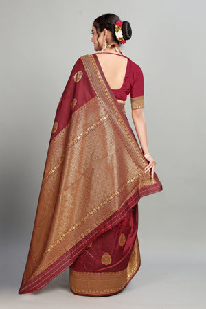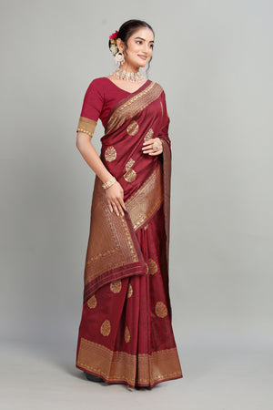 Experience elegance with this soft Silk Blend saree, featuring a beautiful rich pallu and intricate jacquard work throughout. The saree’s exquisite design adds a luxurious touch to any occasion, while the blouse is enhanced with an exclusive jacquard border for a refined finish. Perfect for those seeking a blend of traditional craftsmanship and sophisticated style.