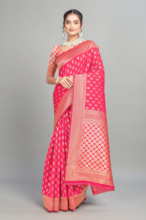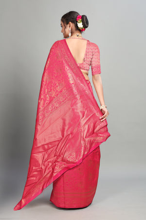 Dark Pink Woven Banarasi Silk Saree