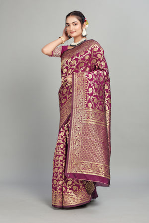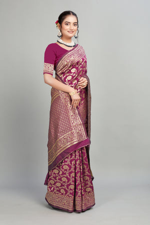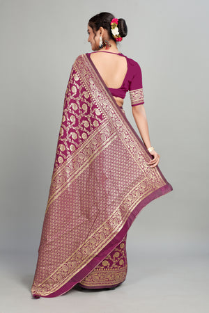 Experience elegance with this soft Silk Blend saree, featuring a beautiful rich pallu and intricate jacquard work throughout. The exclusive blouse complements the saree perfectly with its detailed jacquard border, adding a refined touch to your ensemble. Ideal for special occasions, this saree combines traditional craftsmanship with luxurious fabric for a graceful and sophisticated look.