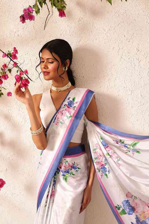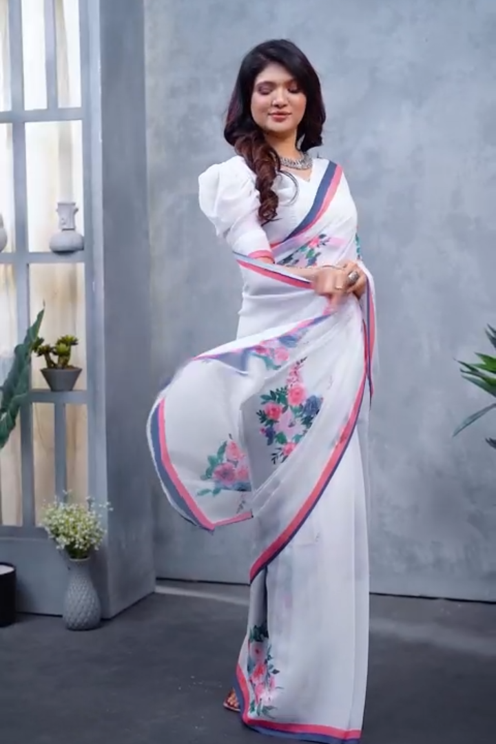 Elevate your ethnic wardrobe with the Bright Moss Alia Bhatt Ready-to-Wear Saree—where elegance meets effortless style. Crafted in luxurious Chinon Chiffon for a floaty, graceful drape, and paired with a chic Banglory blouse, this saree set promises comfort without compromising glam.