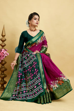 Purple Bandhani Print Soft Dola Cotton Kanjivaram Saree