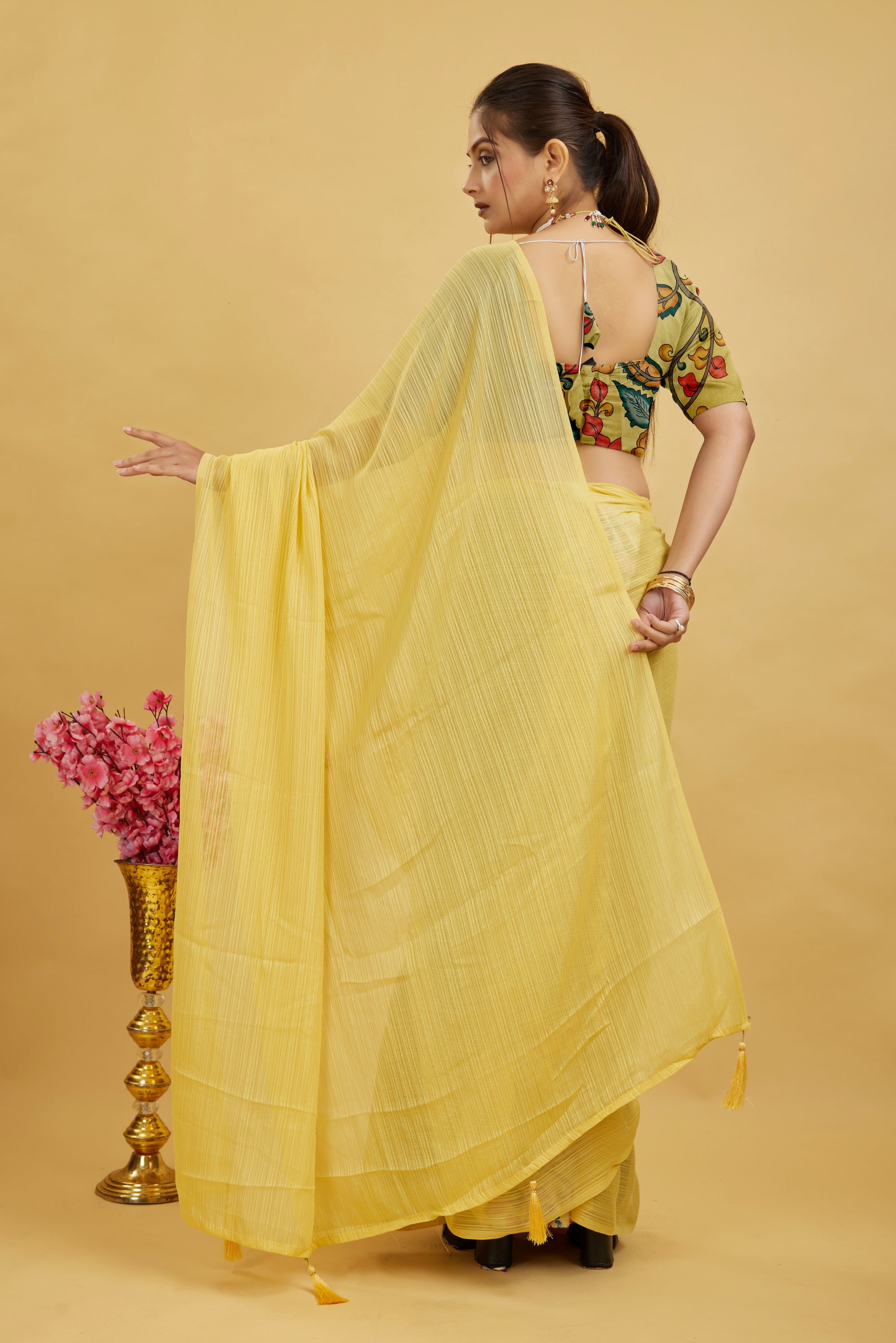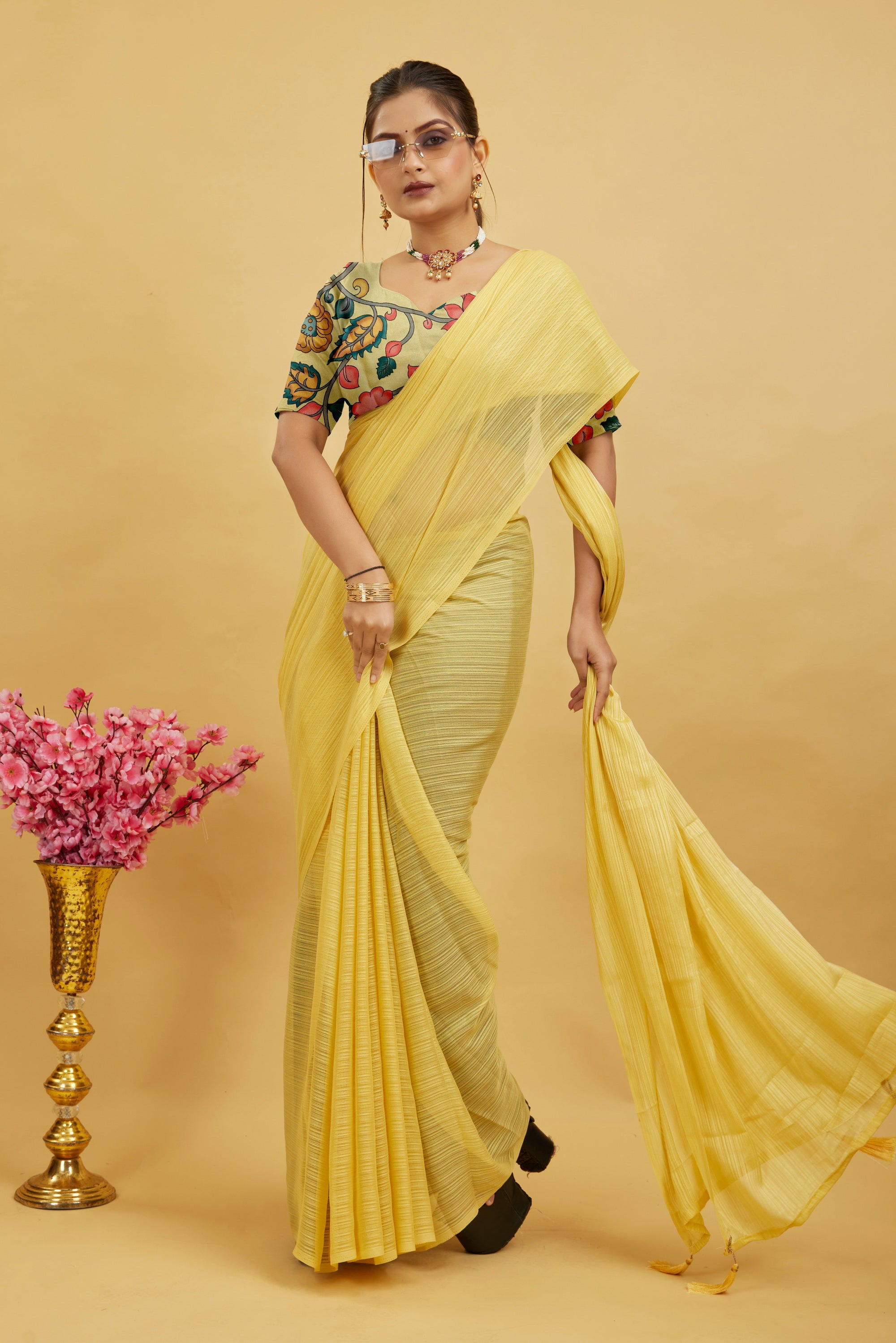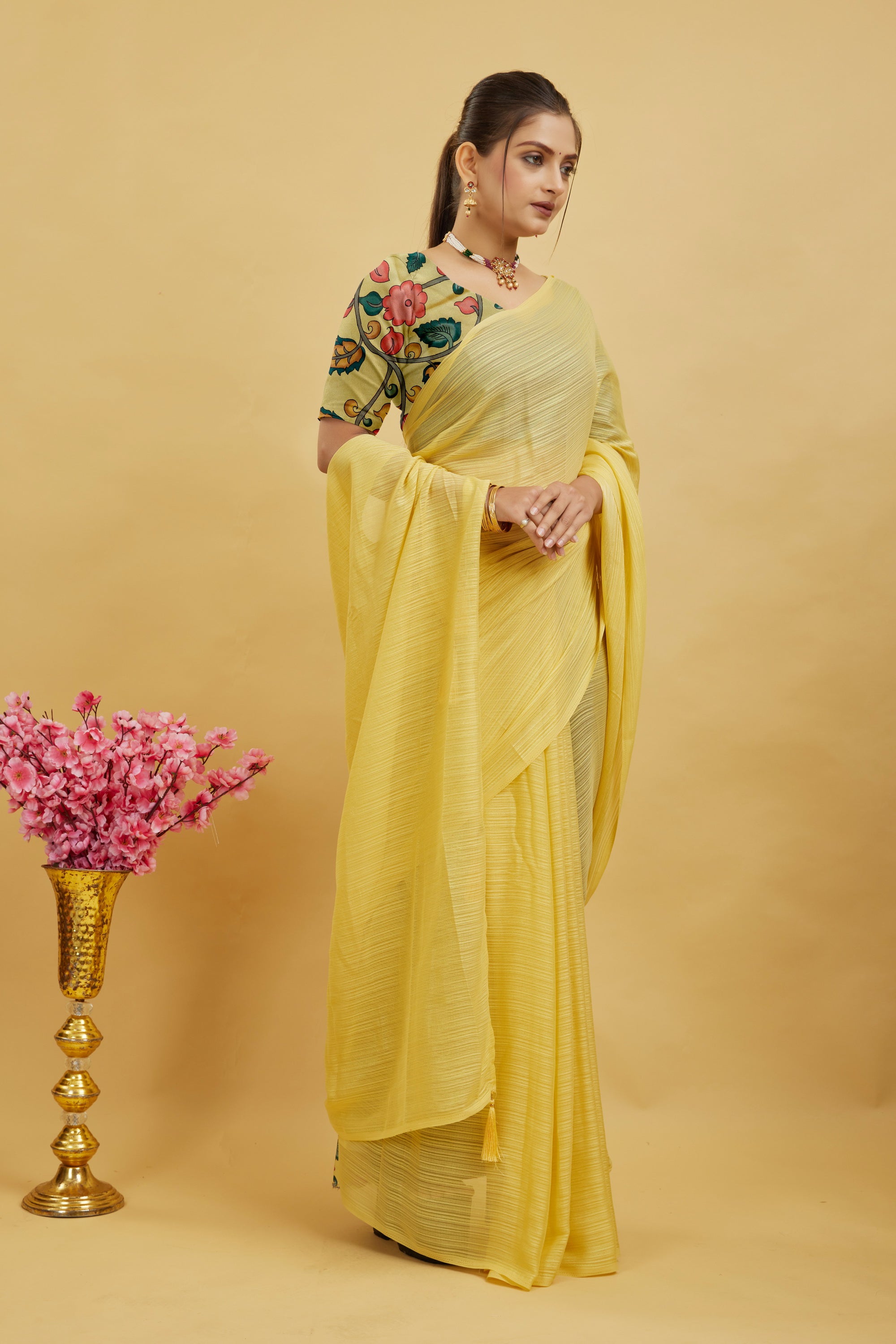 xpertly crafted from 100% polyester, this saree offers a lightweight and comfortable fit while maintaining durability and a subtle sheen. Its versatile design makes it perfect for casual outings, festive occasions, or everyday wear. Paired with a matching polyester blouse, this saree ensures a cohesive, stylish, and elegant look with minimal effort.