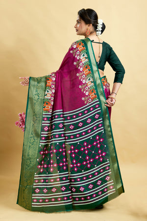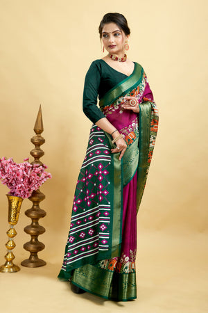 Purple Bandhani Print Soft Dola Cotton Kanjivaram Saree