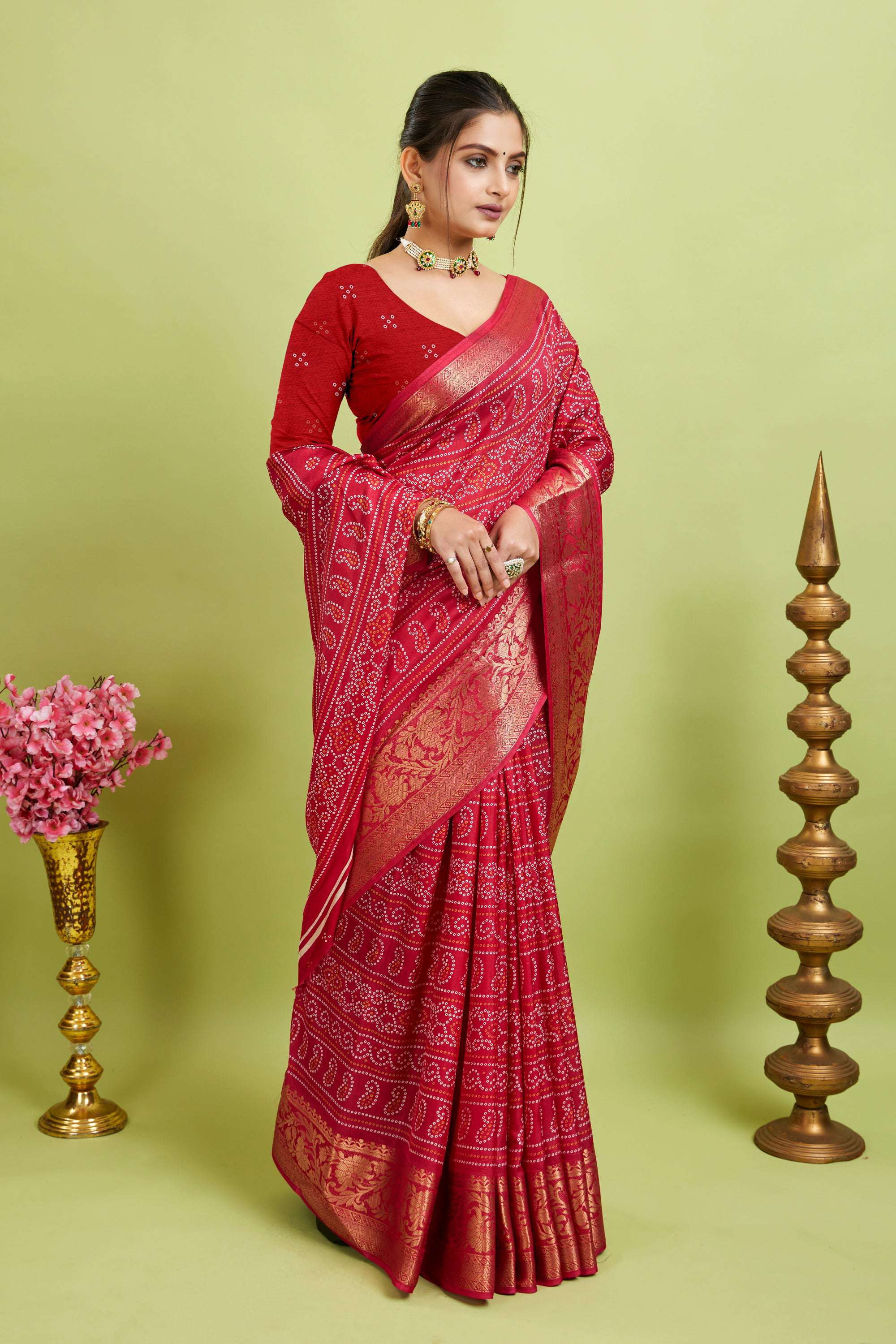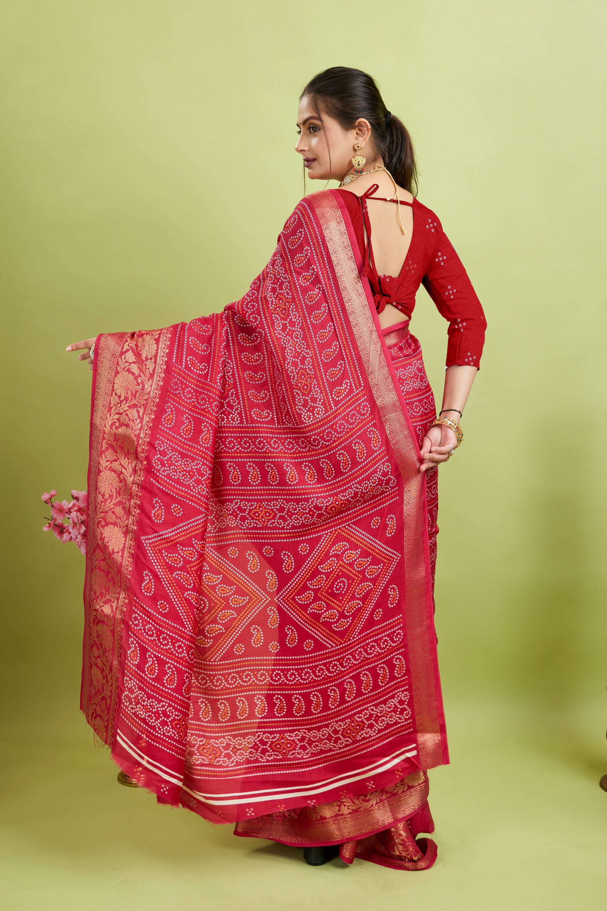• Saree Fabric: Bandhani Print Soft Dola Cotton Kanjivaram Saree
