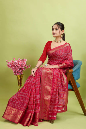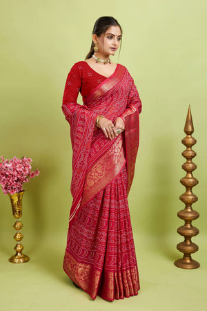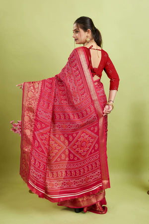 Pink Bandhani Print Soft Dola Cotton Kanjivaram Saree