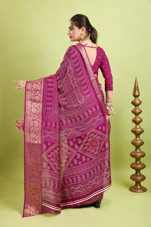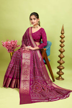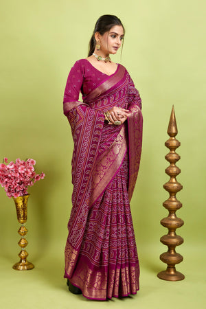 Purple Bandhani Print Soft Dola Cotton Kanjivaram Saree