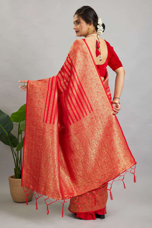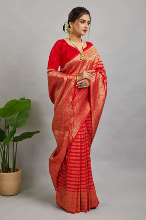 Red Woven Banarasi Khadi Silk Saree