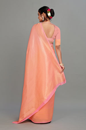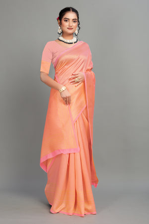 Experience elegance with this soft Silk Blend saree, featuring a rich pallu adorned with intricate jacquard work throughout. The exclusive blouse is enhanced by a refined jacquard border, adding a sophisticated touch to the ensemble. Ideal for special occasions, this saree combines traditional craftsmanship with luxurious comfort.