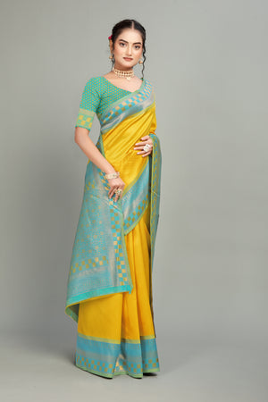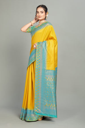 Yellow Woven Banarasi Silk Saree