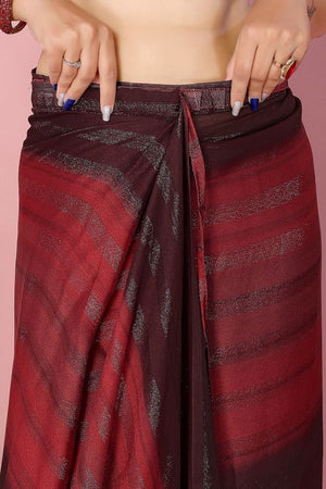 Red Ready To Wear Shimmer Nylon Silk Saree