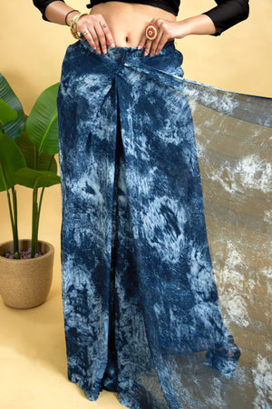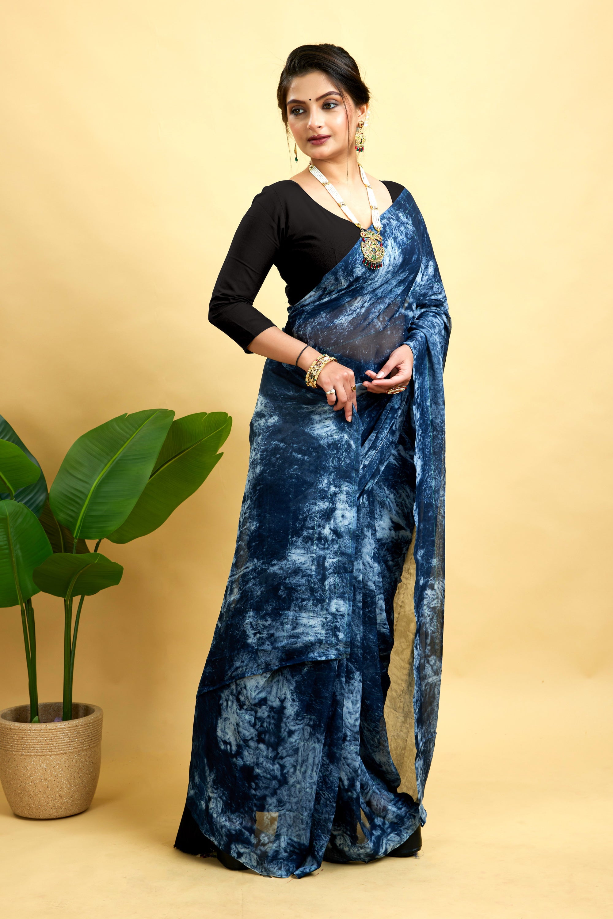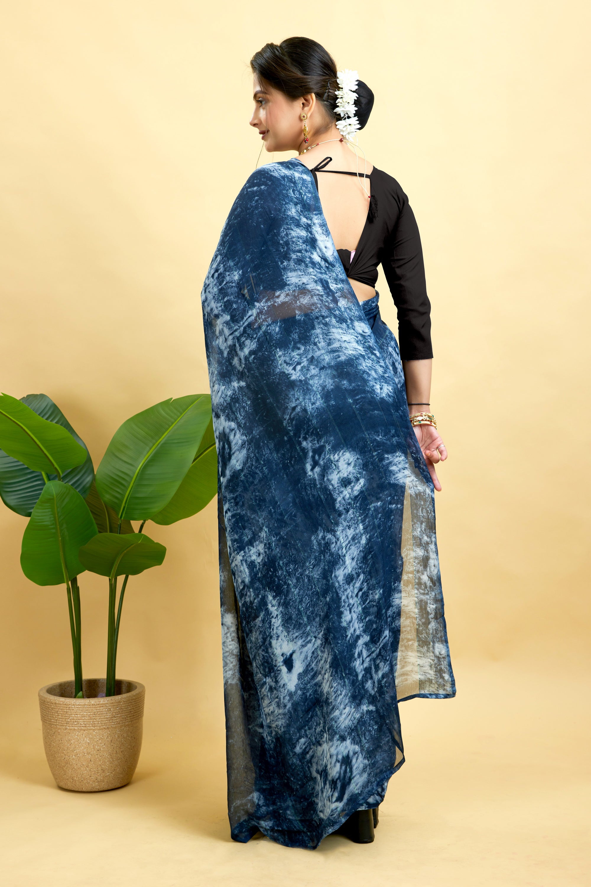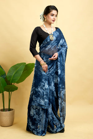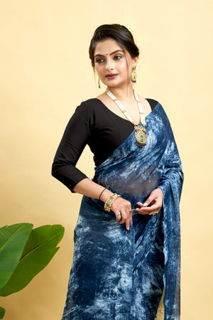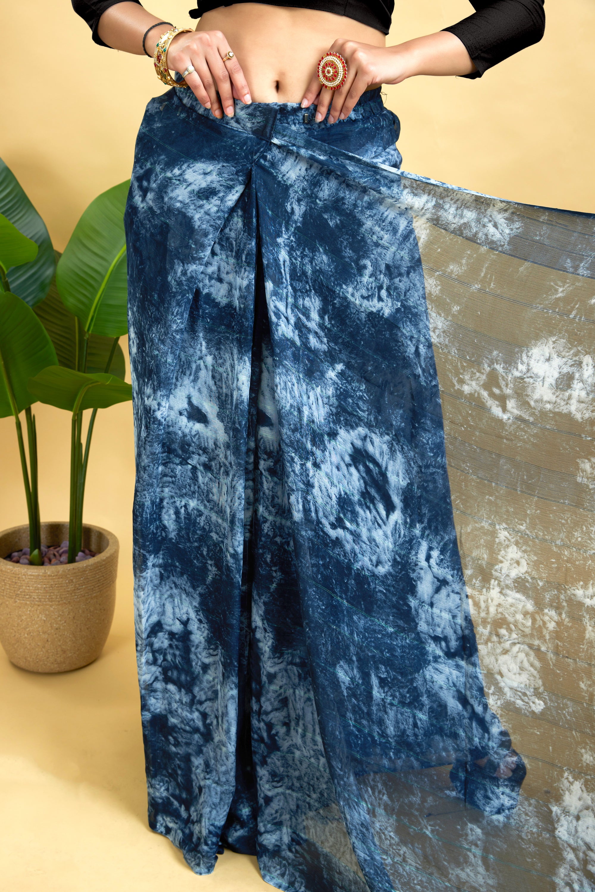 Blue Ready To Wear Marble Dyed Rangoli Silk Saree