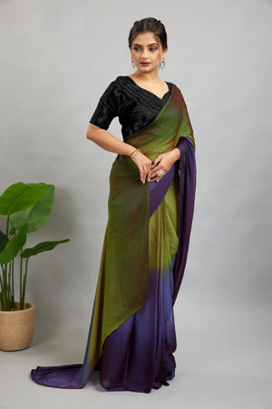 Green Ready To Wear Two Toned Nylon Silk Saree