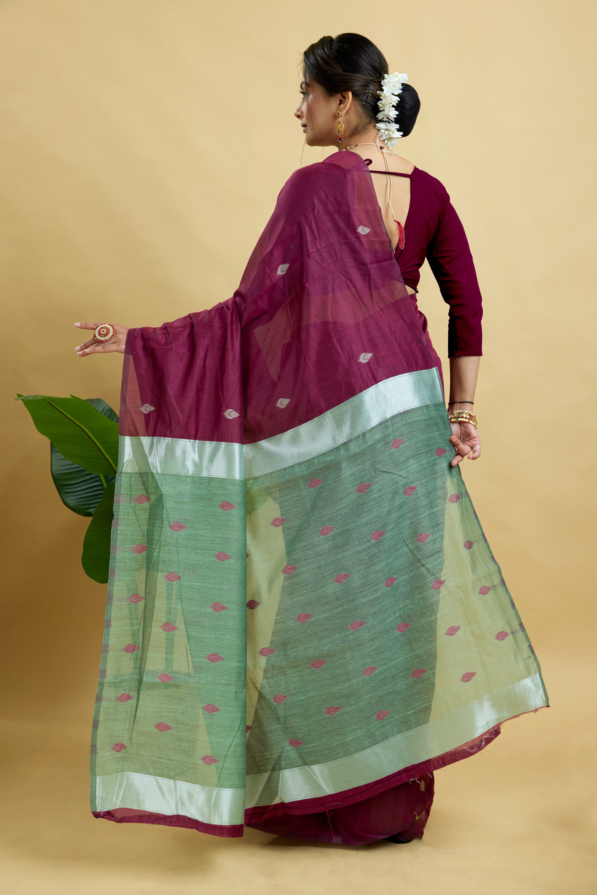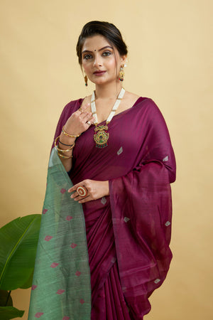 Wine Woven Cotton Silk Saree