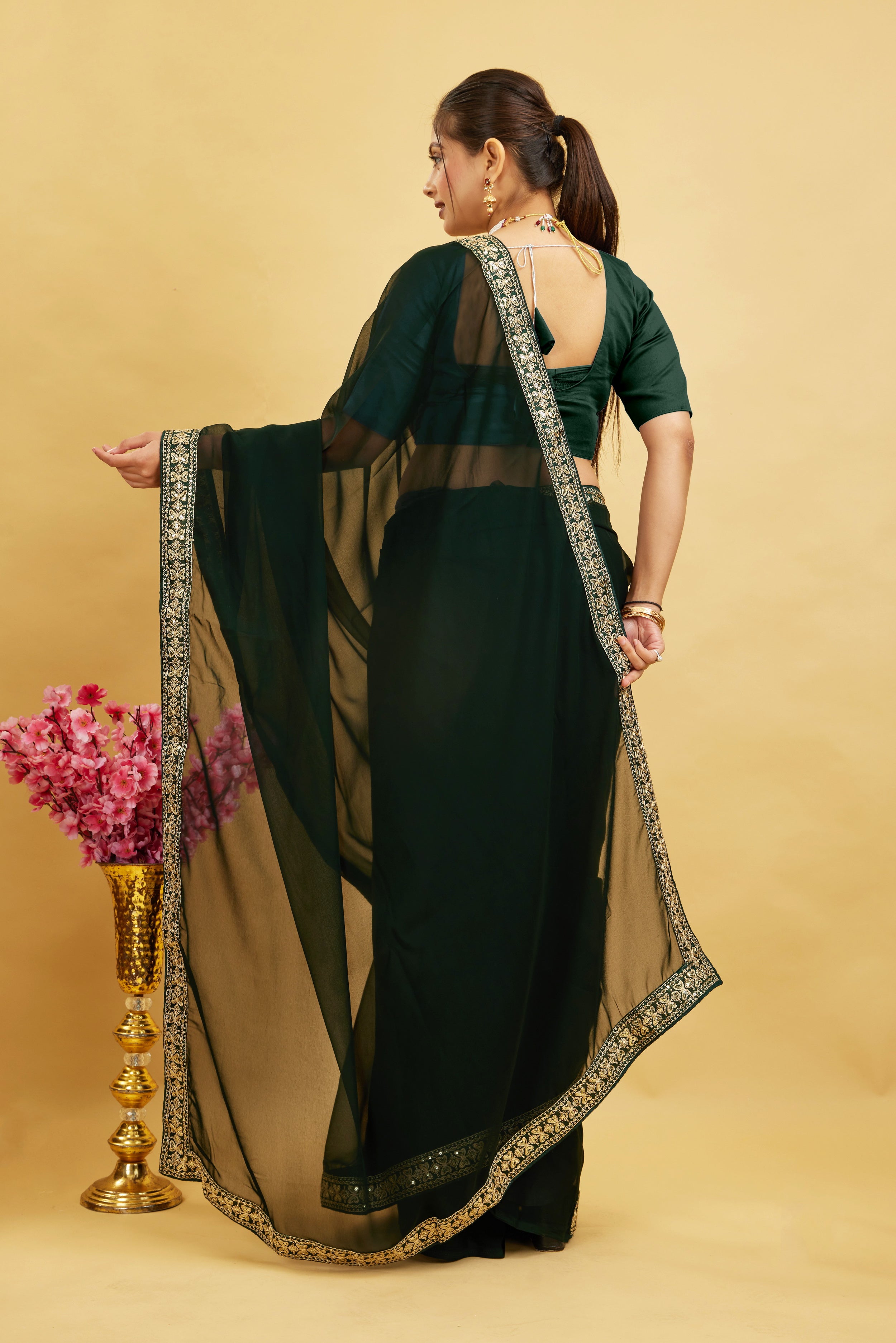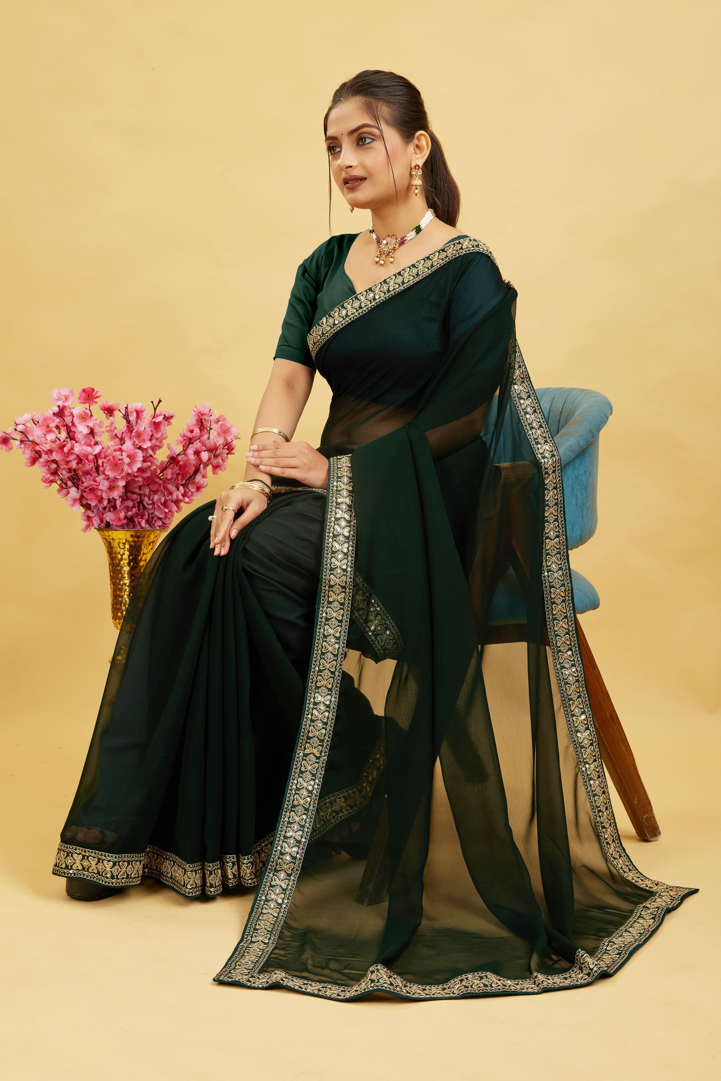 This soft georgette saree is the perfect choice for formal occasions and festive events. Crafted from high-quality georgette, it offers a luxurious drape and sophisticated look. Its lightweight and breathable fabric ensures all-day comfort, while the coordinating Bangalori Satin blouse completes a seamless, elegant ensemble. A timeless addition to your traditional wardrobe, this saree effortlessly combines style and grace.