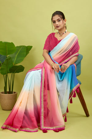 This product features georgette fabric, known for its lightweight and flowing drape. Made from silk or polyester, it's perfect for creating elegant and feminine garments. With its slightly crepe-like texture, it adds a touch of luxury and sophistication to any outfit.
