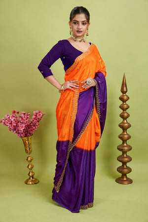 Ideal for weddings, festive galas, or evening soirées when you want to shine. With a generous 5.5 metres of saree and 0.8 metres for the blouse, the ready-set ensemble gives you depth, elegance, and perfect coverage without the drama of over-layering. Choose between vibrant Orange or regal Purple shades to match your mood—and let the craftsmanship speak for itself.