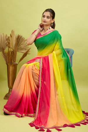 This product features georgette fabric, known for its lightweight and flowing drape. Made from silk or polyester, it's perfect for creating elegant and feminine garments. With its slightly crepe-like texture, it adds a touch of luxury and sophistication to any outfit.