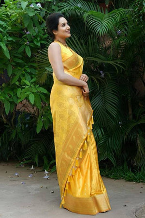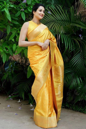 Yellow Weaving Silk Blend Saree