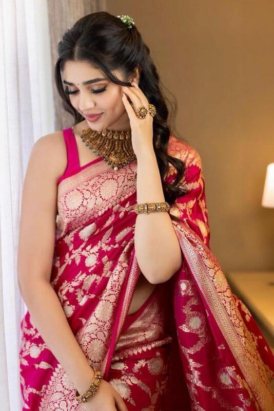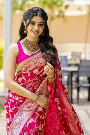 Expertly crafted from Smooth Kanjivaram Silk, this luxurious saree promises a smooth and delicate feel against the skin. Its rich texture and lightweight quality make it perfect for comfortable, elegant draping, making it a must-have for any discerning fashionista's wardrobe.