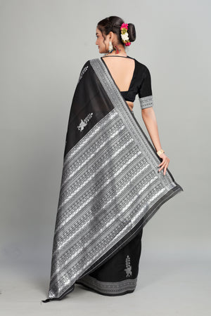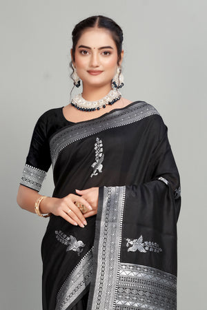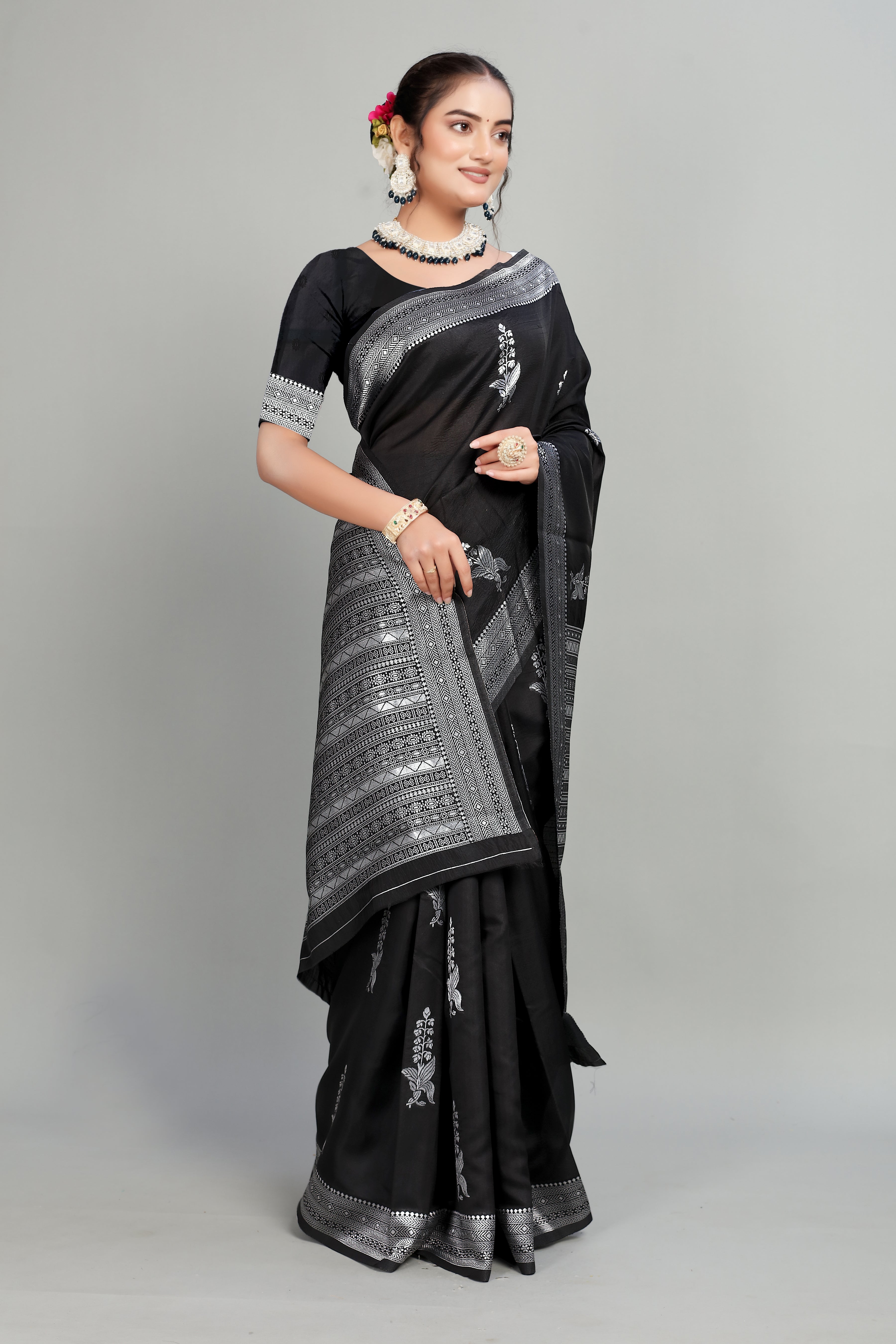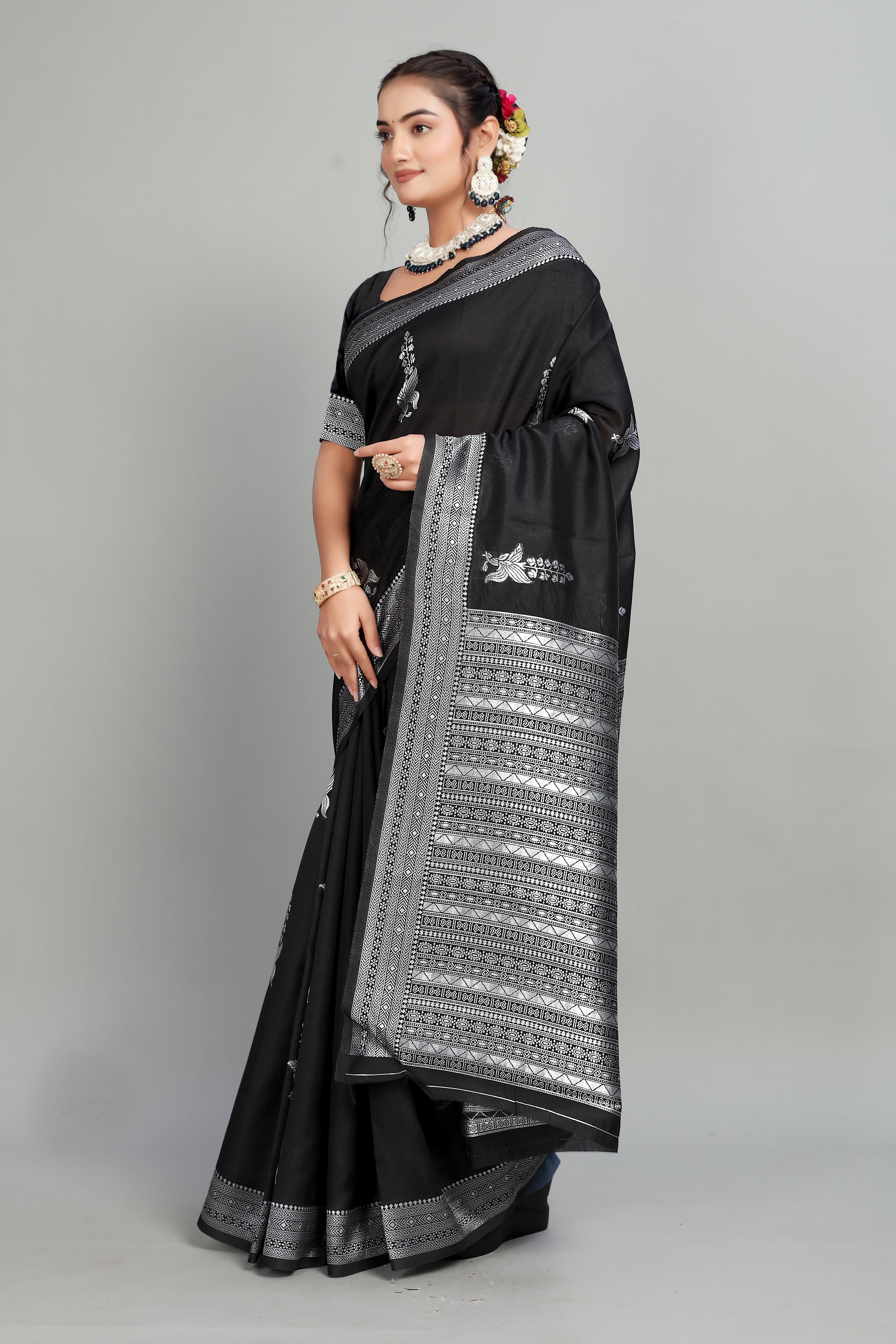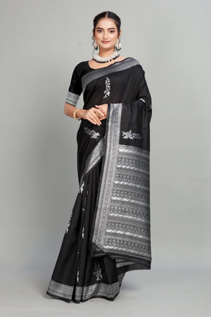 Experience elegance with this soft Silk Blend saree featuring an exquisite rich pallu and intricate jacquard work throughout. The saree's texture offers a smooth, comfortable drape, while the exclusive jacquard border on the blouse enhances its refined appeal, making it ideal for festive occasions and formal events.