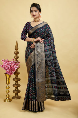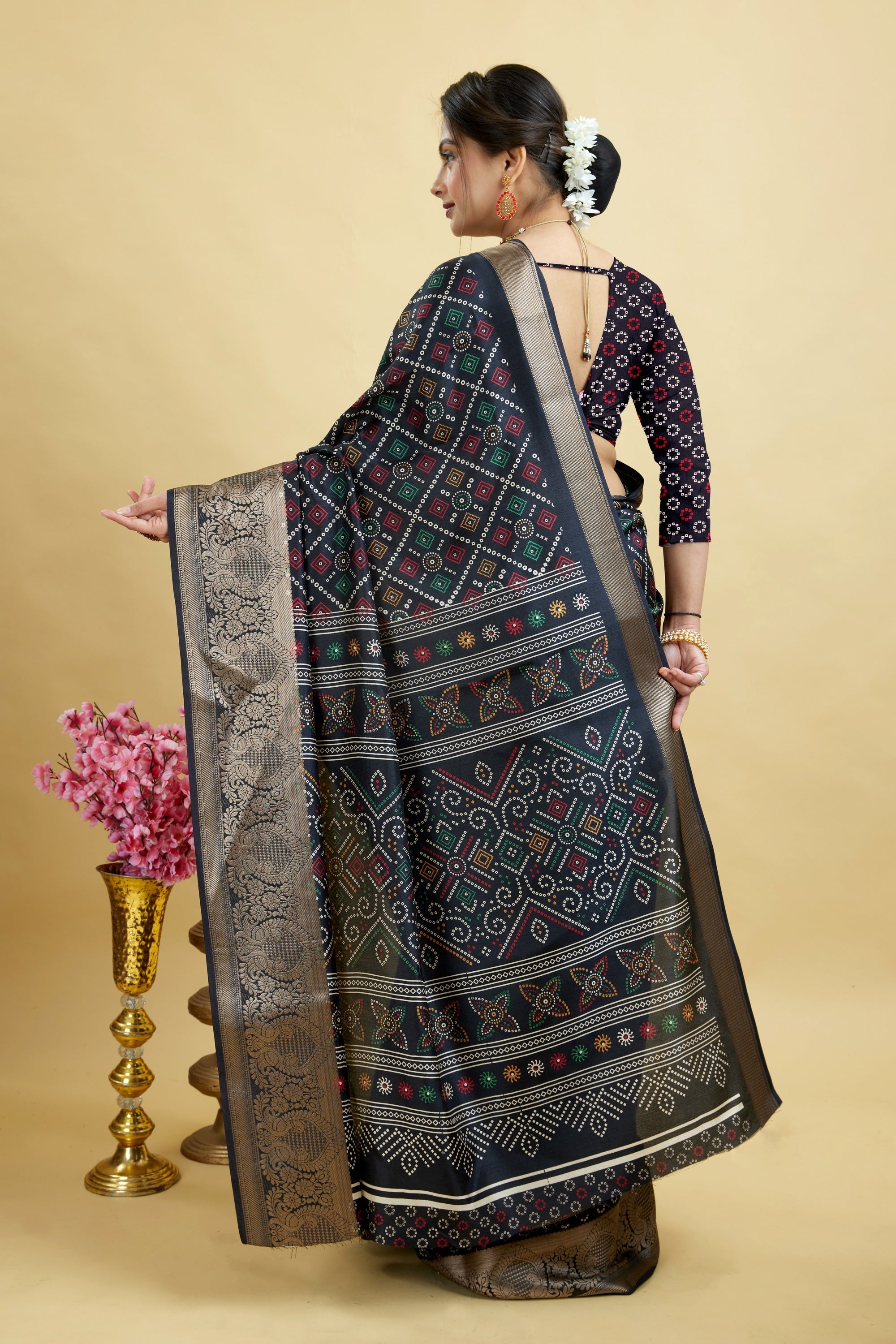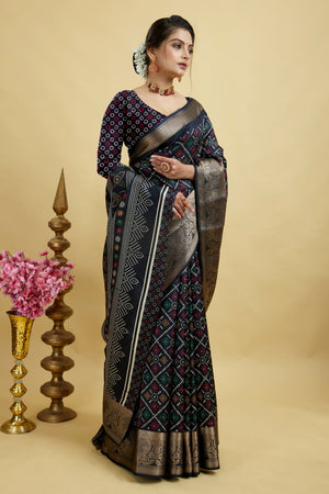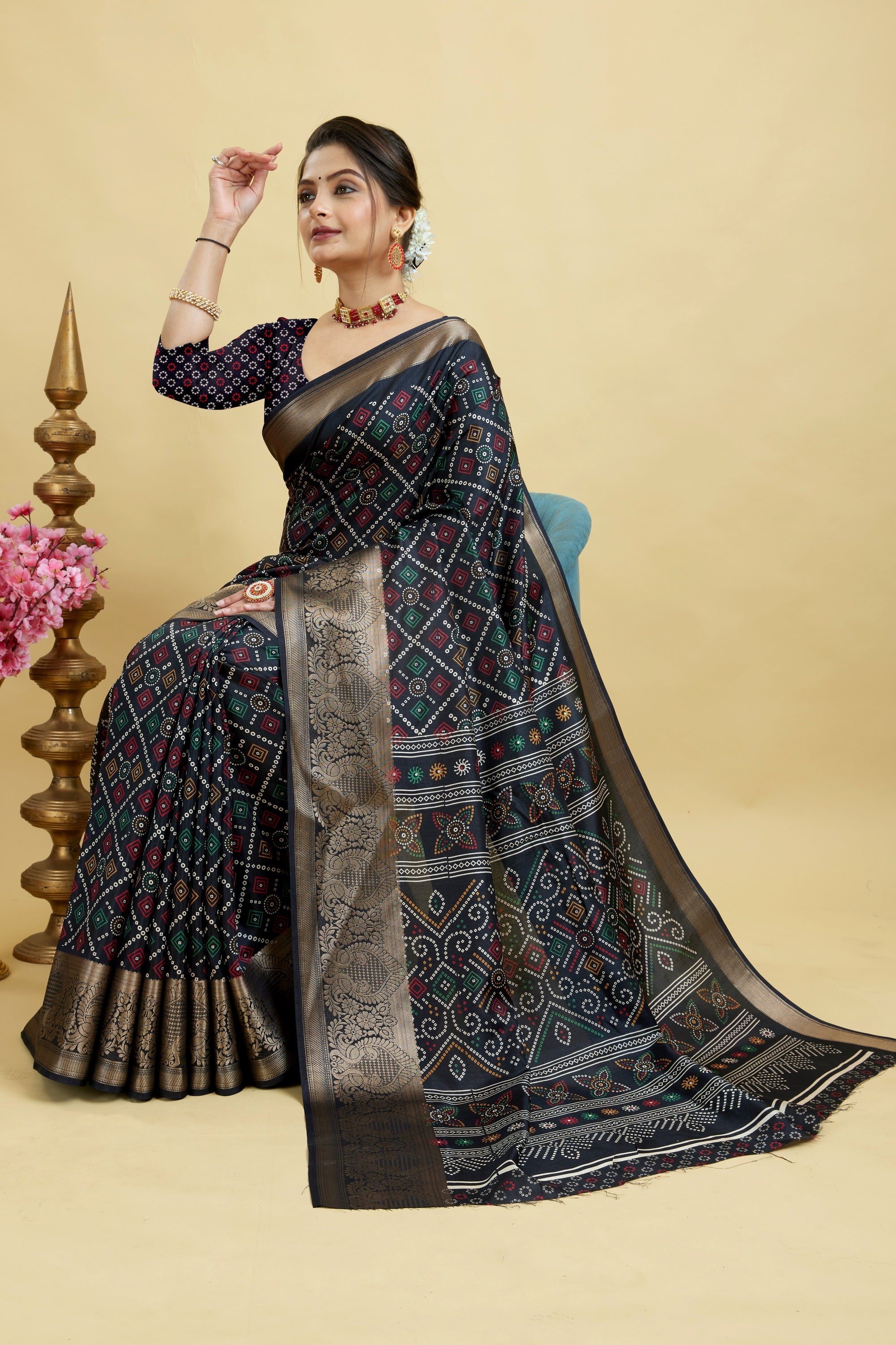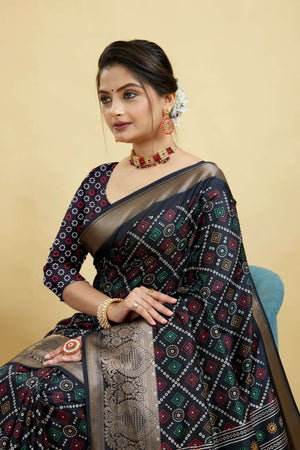 Black Bandhani Print Soft Dola Cotton Kanjivaram Saree