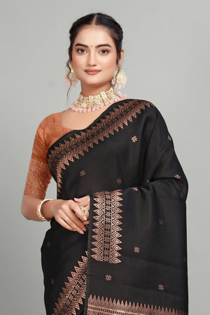 This soft Silk Blend saree features an elegant design with a rich pallu and intricate jacquard work throughout, enhancing its luxurious appeal. Complemented by an exclusive jacquard border blouse, it offers a sophisticated and cohesive look ideal for special occasions. The fine texture and detailed craftsmanship combine to provide both comfort and timeless style.