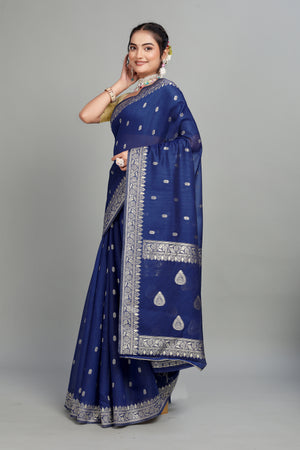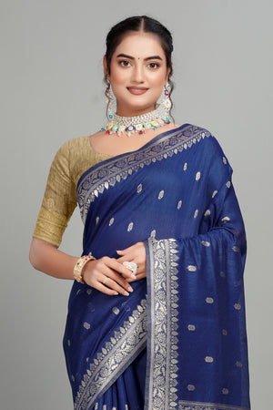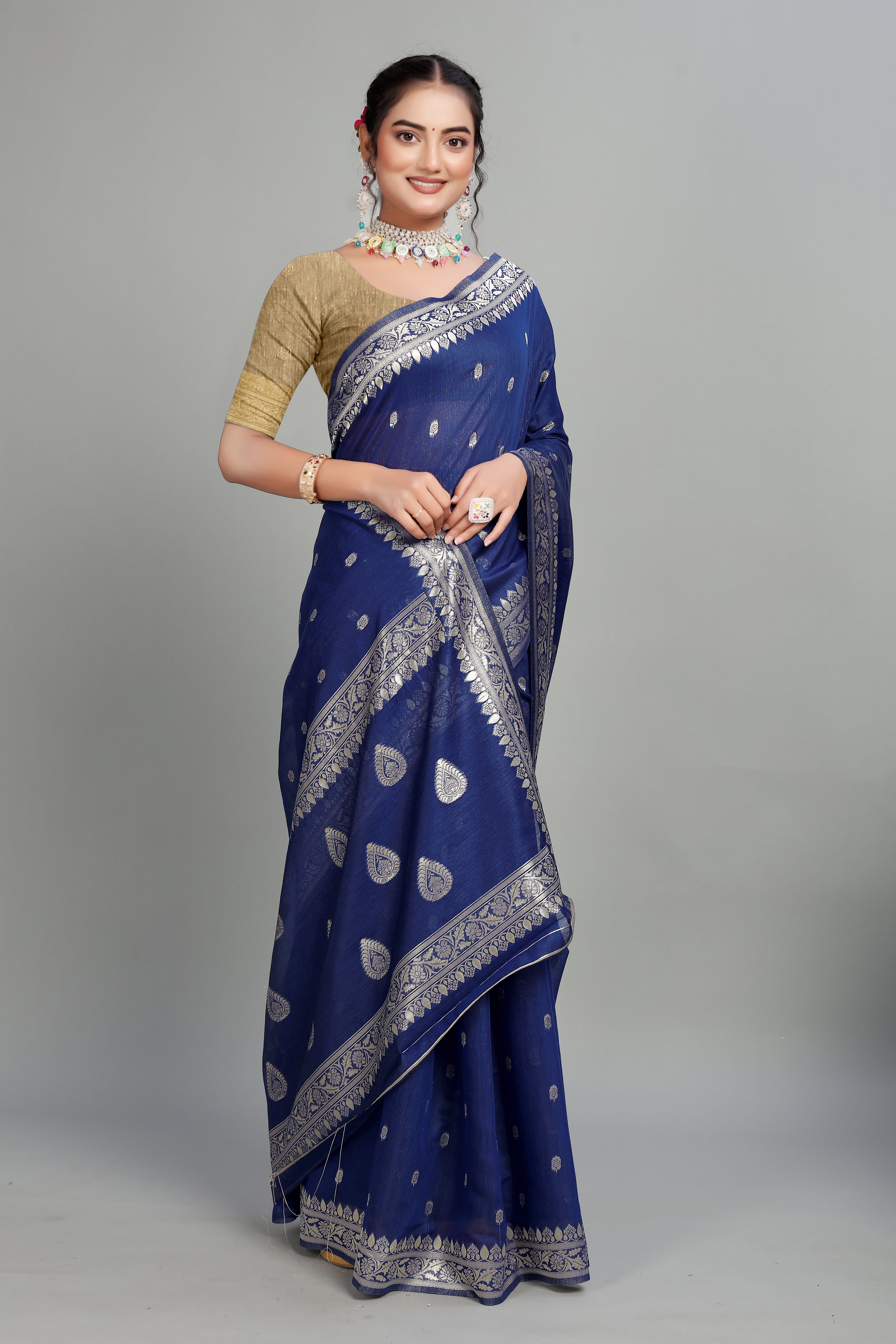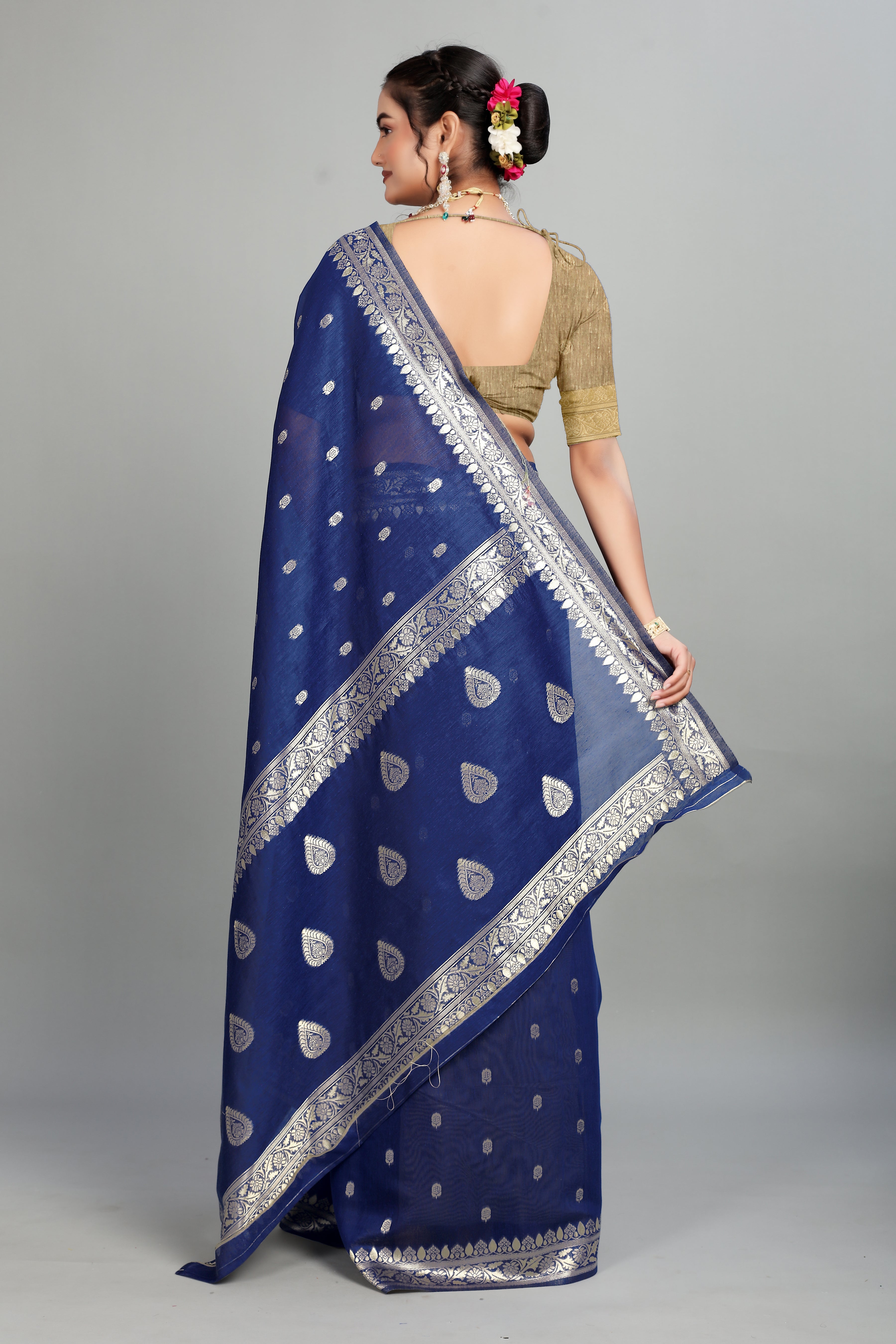 Blue Soft Lilan Slab Butti Print Casual Wear Saree