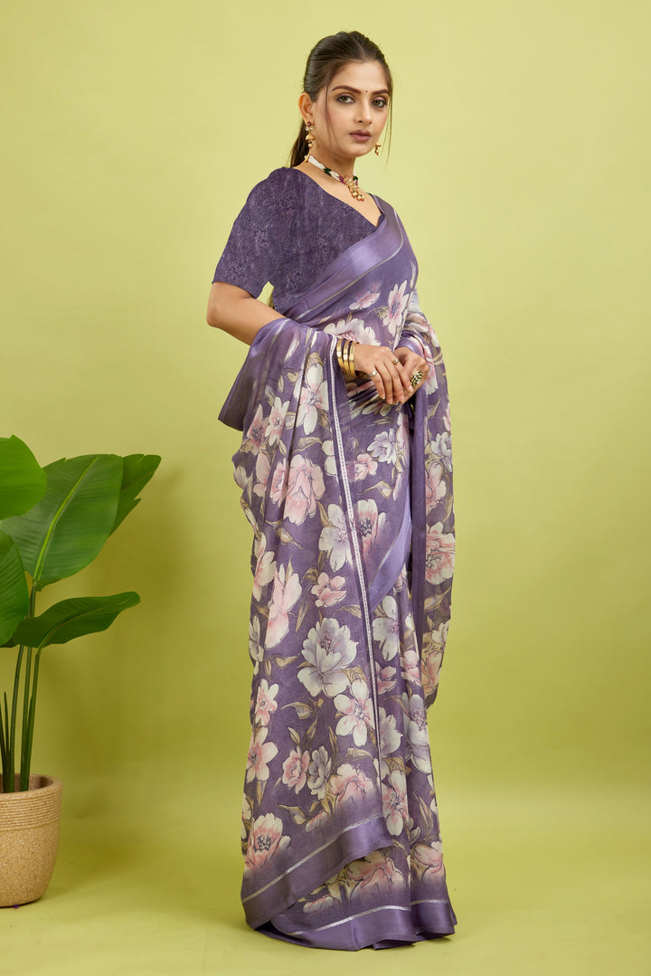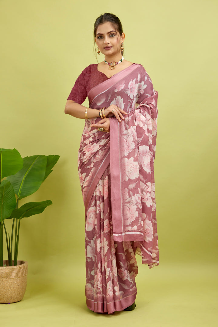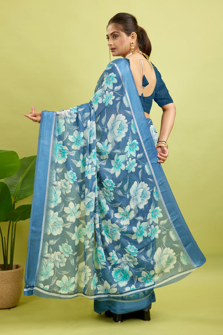 Elevate your festive and formal wardrobe with this Bright Moss Satin Patta Printed Saree, crafted from premium satin patta fabric known for its smooth texture and subtle sheen. The matching blouse, made from the same high-quality fabric, ensures a cohesive and elegant look. Combining traditional craftsmanship with modern style, this saree is perfect for celebrations, special occasions, or any event where you want to make a graceful statement.