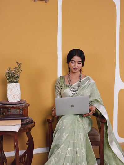 ✨ Soft Linen Cotton Silk Saree — Weaving Zari Elegance