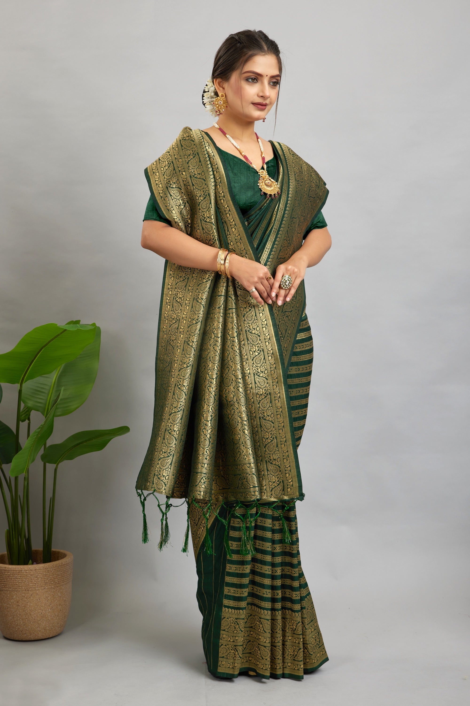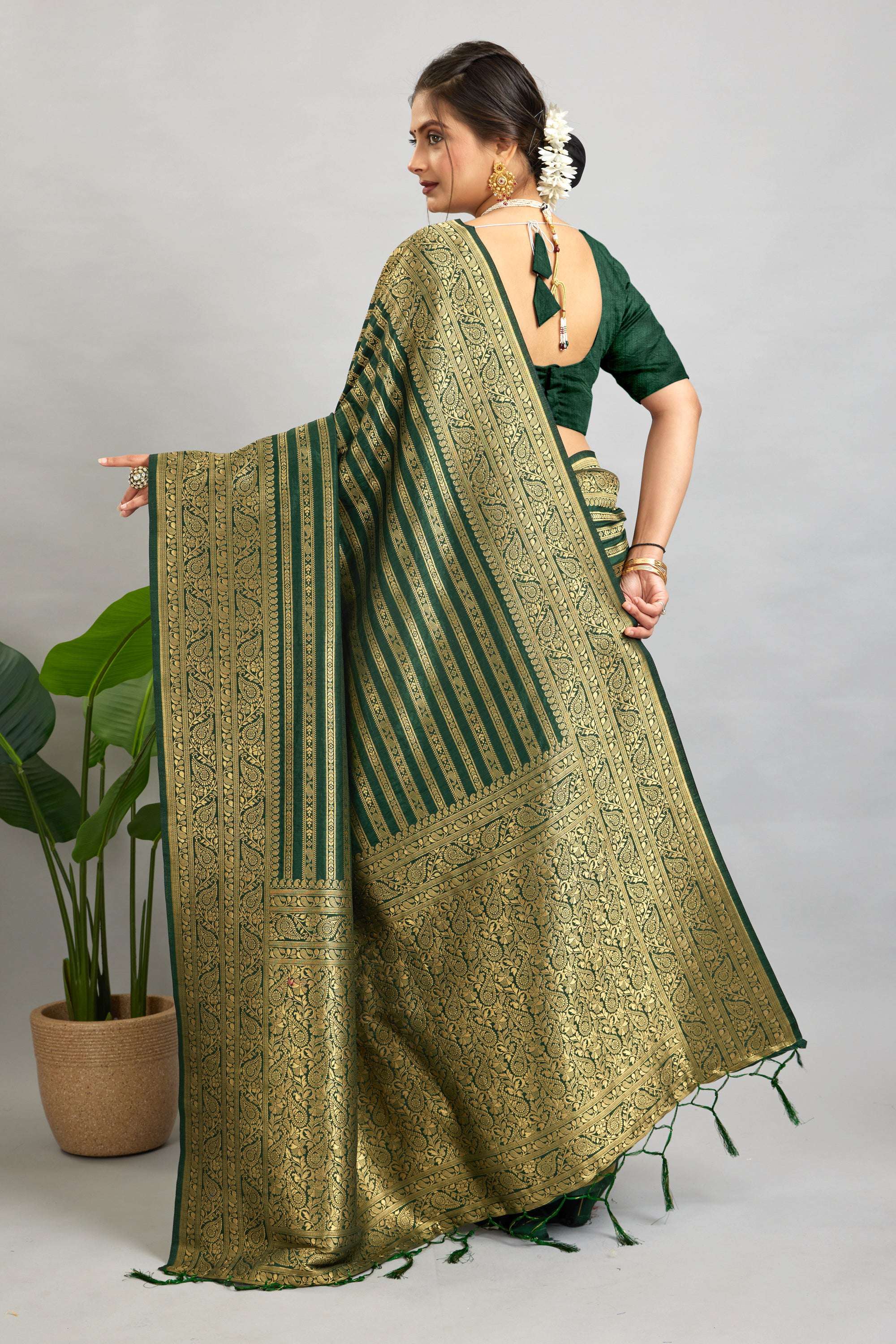 Green Woven Banarasi Khadi Silk Saree
