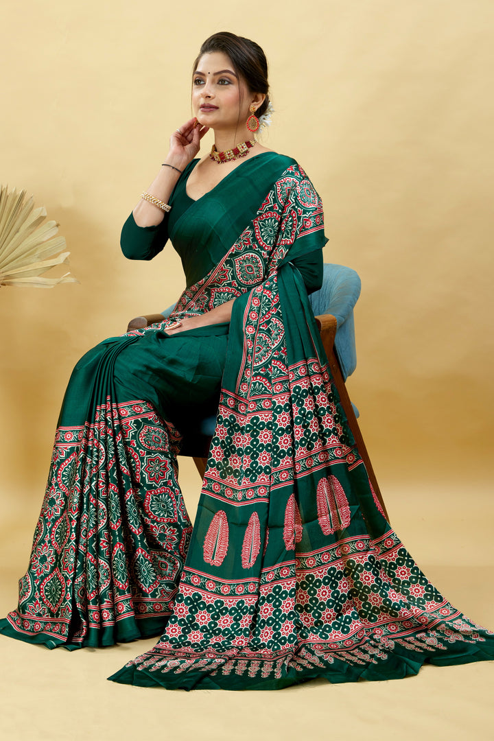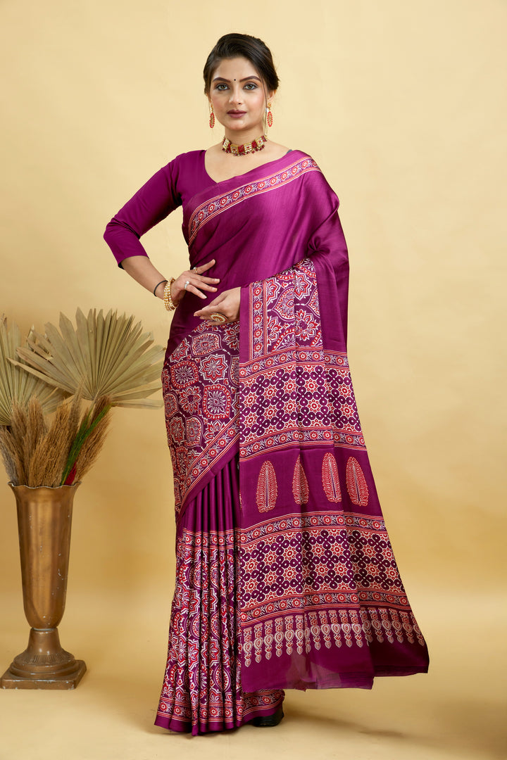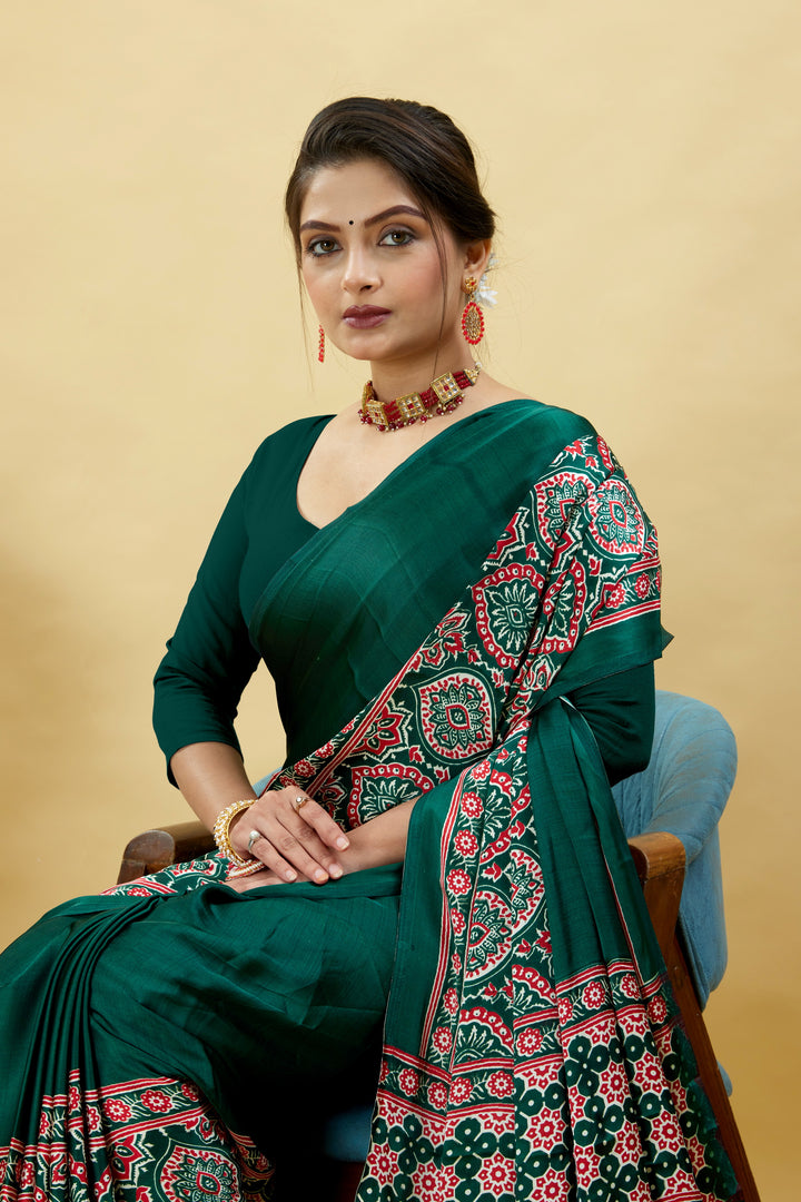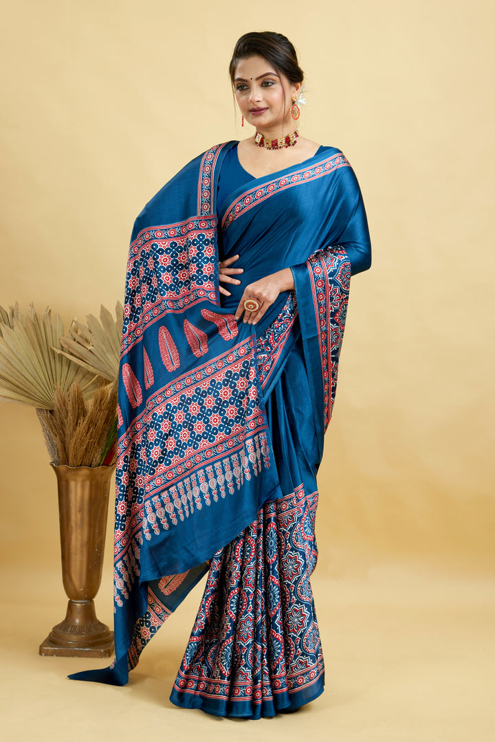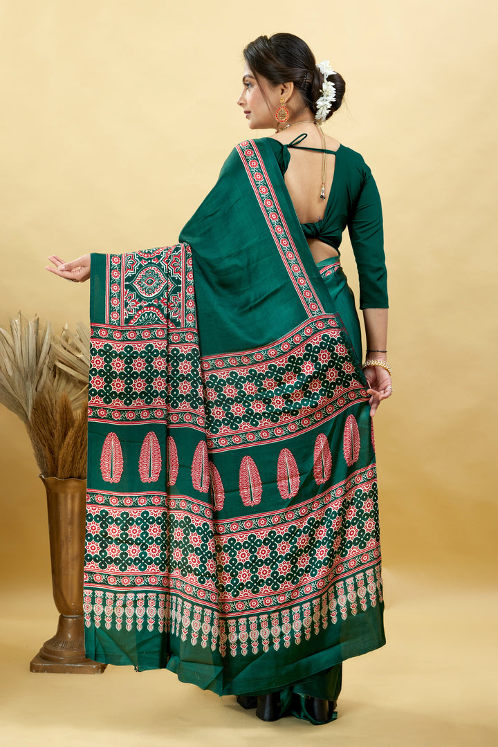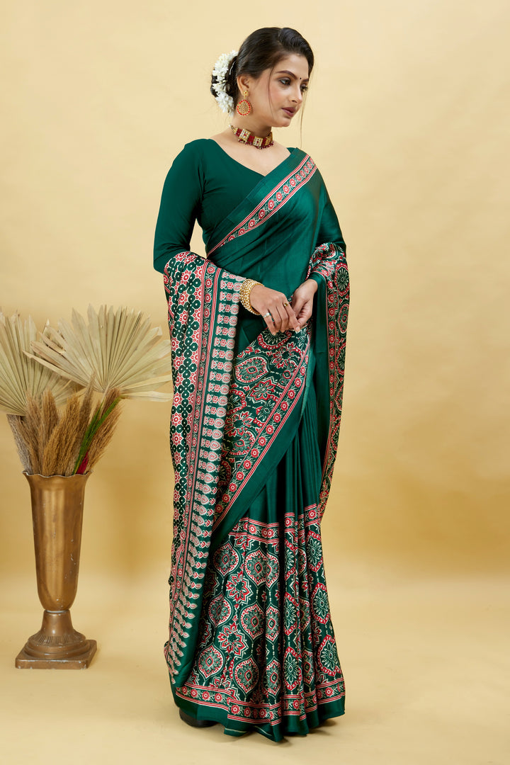 Crafted from premium semi Gajji fabric, this Lagdi Pure Gajji Soft Silk Saree offers a luxurious yet comfortable drape, perfect for formal occasions. Its rich texture elevates the saree’s elegance while ensuring long-lasting durability. The soft silk finish adds a graceful sheen, showcasing expert craftsmanship and refined taste in traditional attire. A timeless addition to any wardrobe, this saree beautifully blends sophistication with comfort.