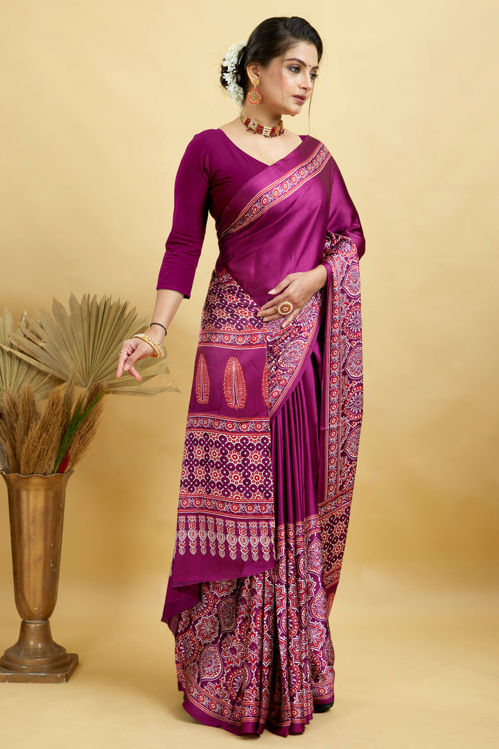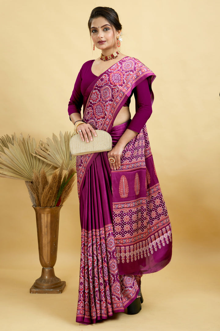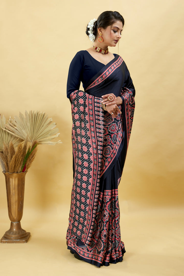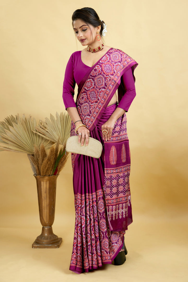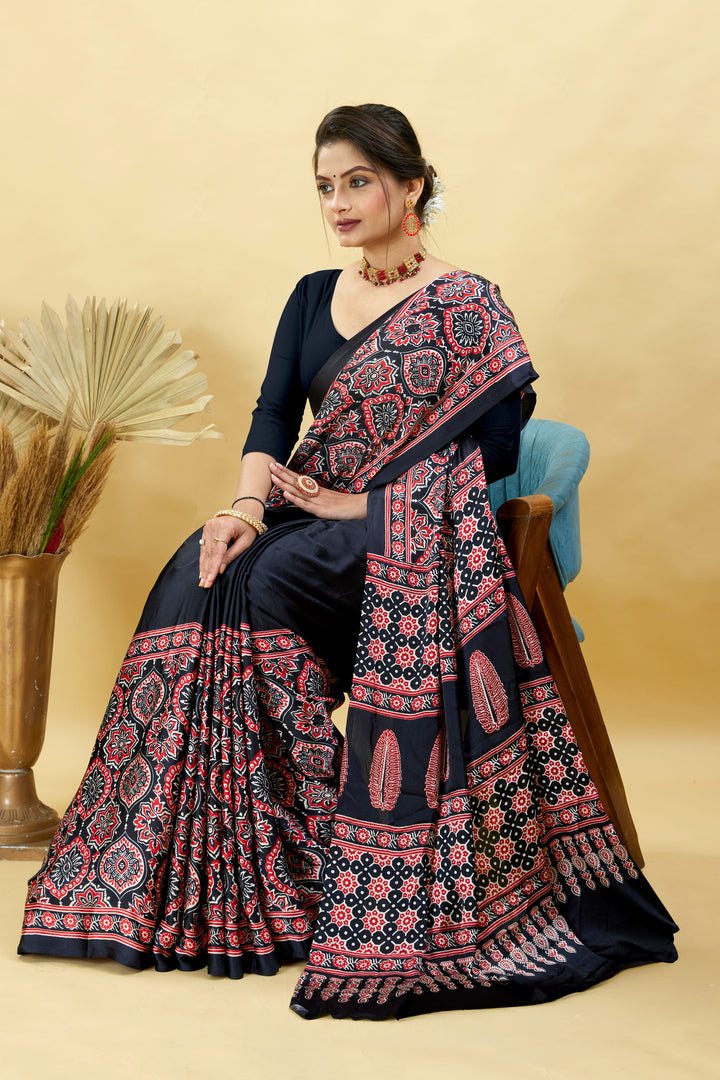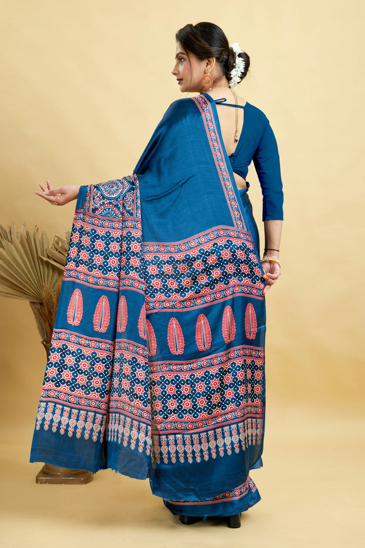 Crafted from premium semi Gajji fabric, this Lagdi Pure Gajji Soft Silk Saree offers a luxurious yet comfortable drape, perfect for formal occasions. Its rich texture elevates the saree’s elegance while ensuring long-lasting durability. The soft silk finish adds a graceful sheen, showcasing expert craftsmanship and refined taste in traditional attire. A timeless addition to any wardrobe, this saree beautifully blends sophistication with comfort.