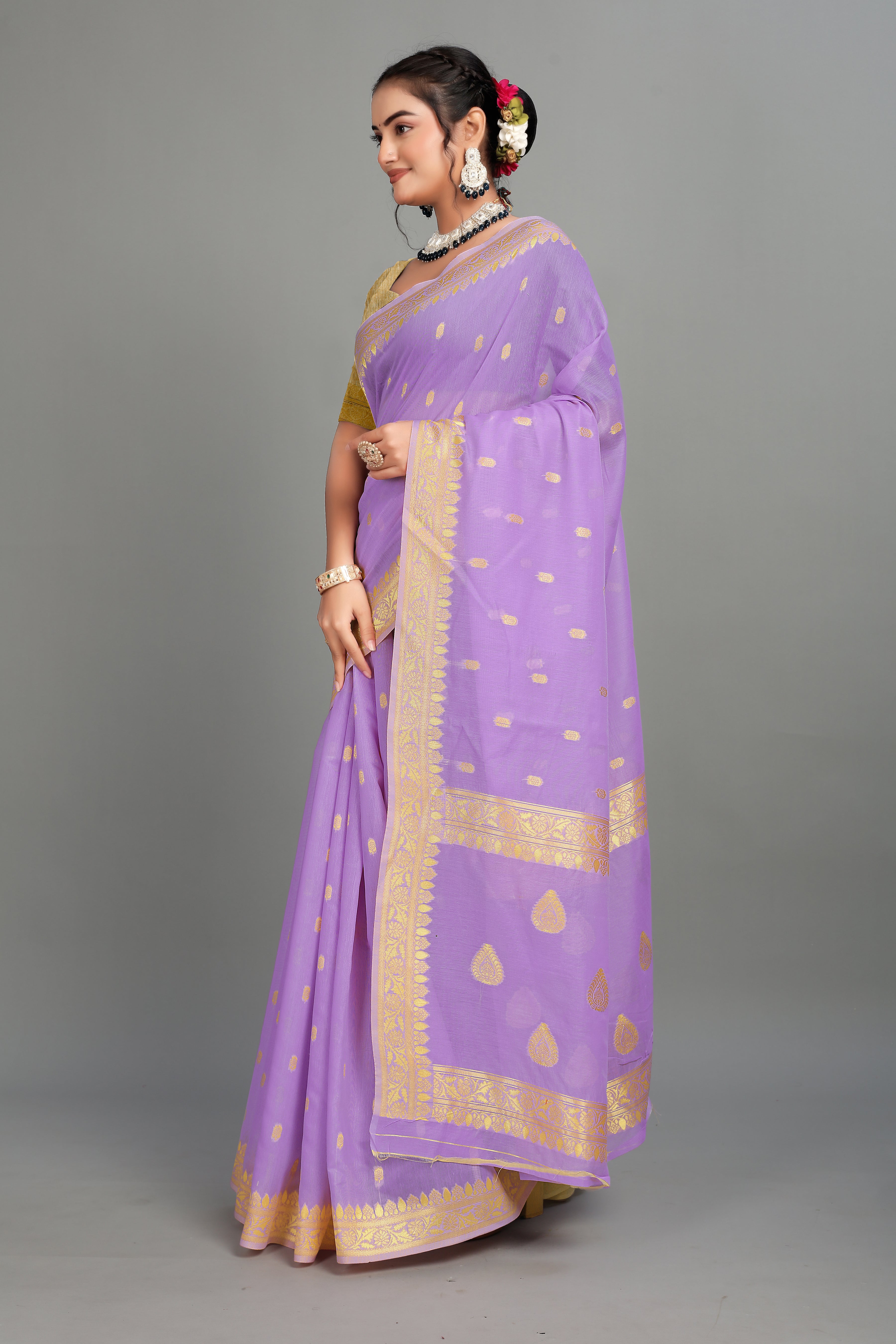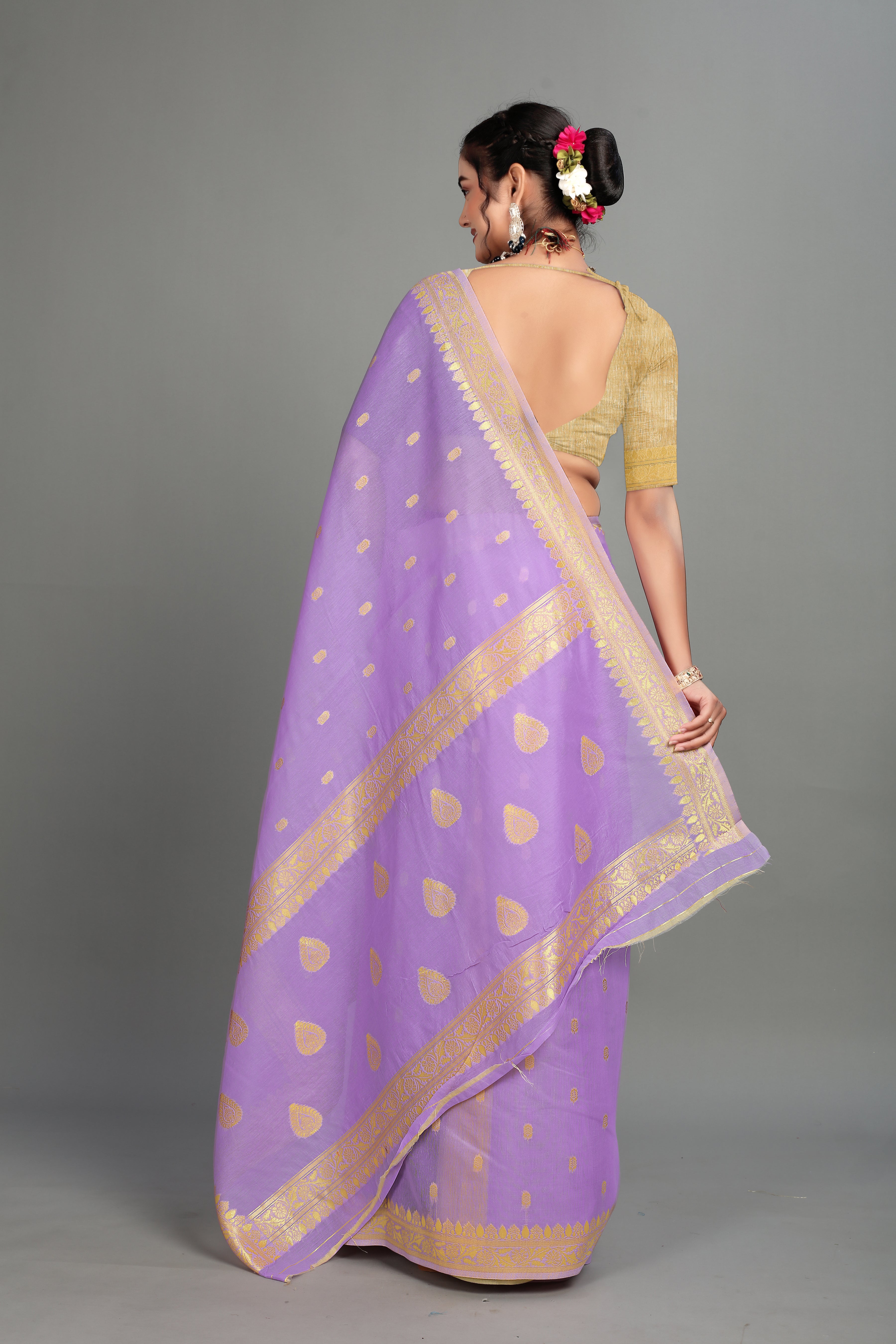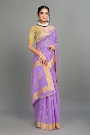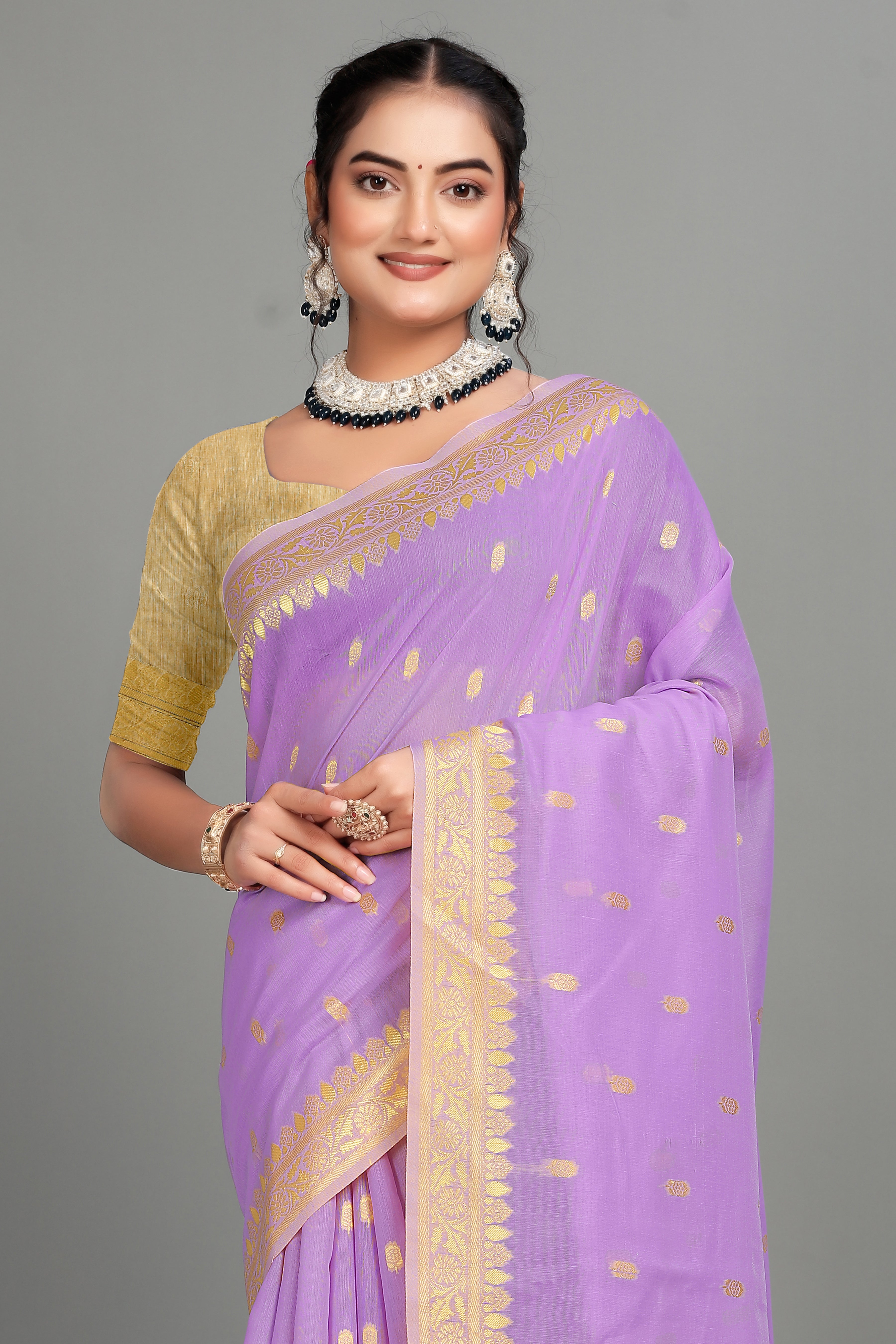 Lavender Soft Lilan Slab Butti Print Casual Wear Saree