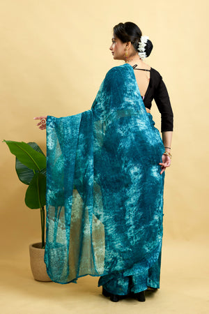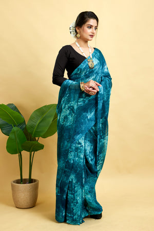 Light Blue Ready To Wear Marble Dyed Rangoli Silk Saree