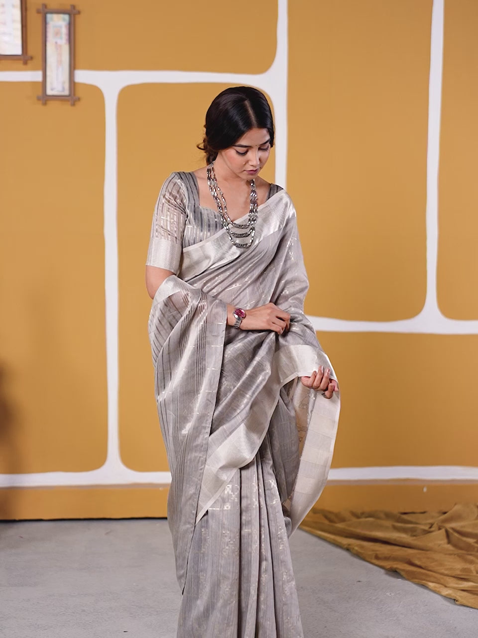 ✨ Soft Linen Cotton Silk Saree — Weaving Zari Elegance