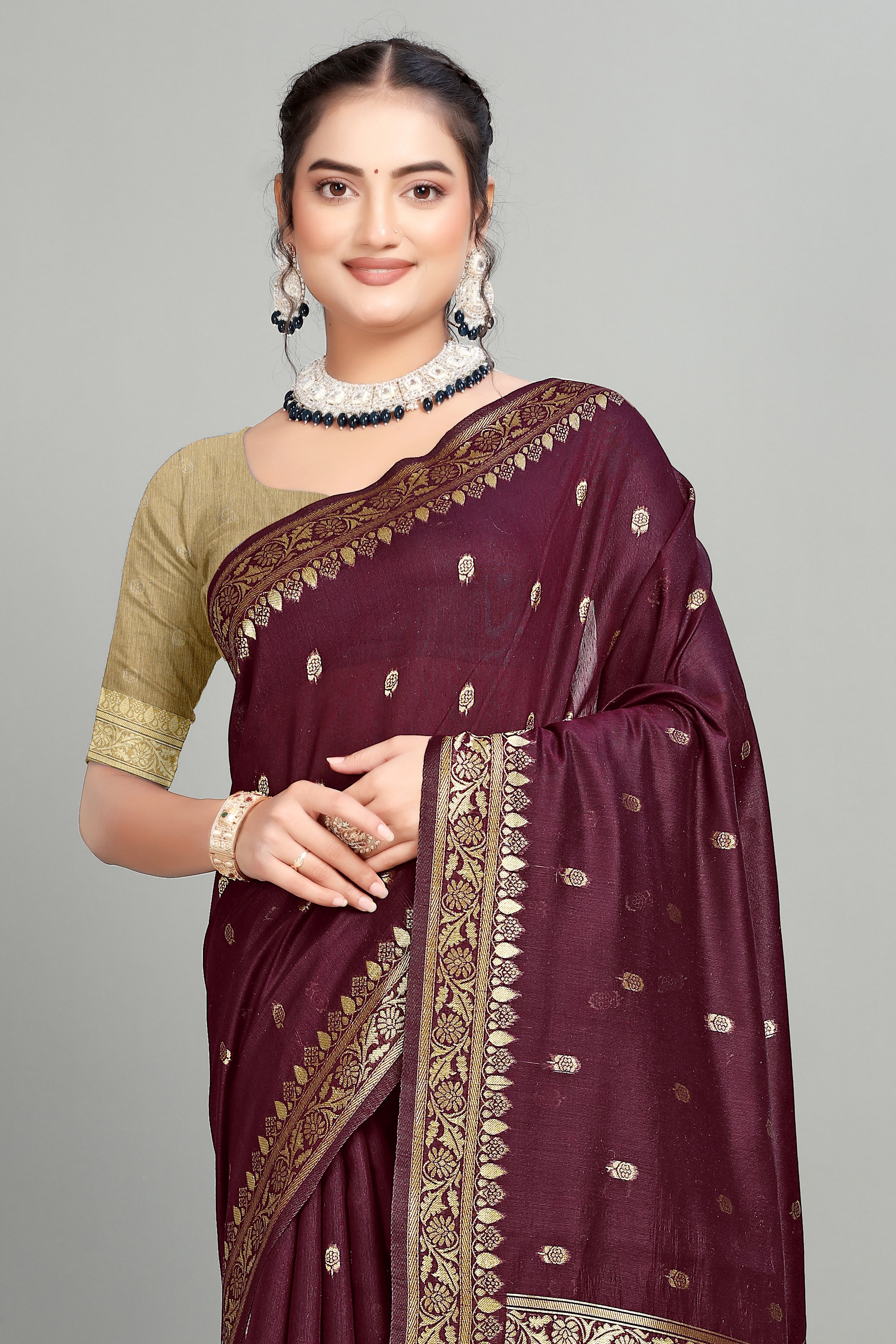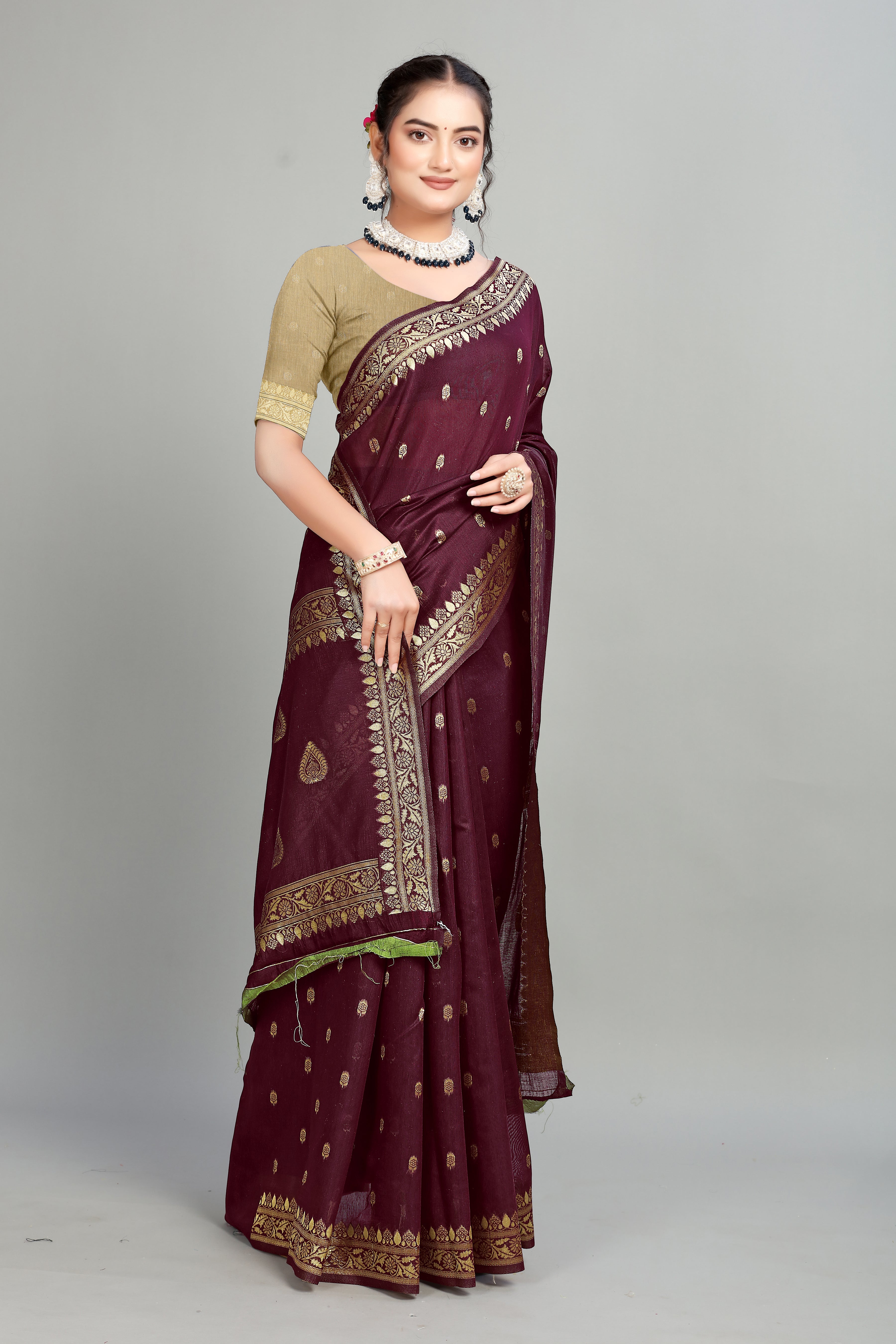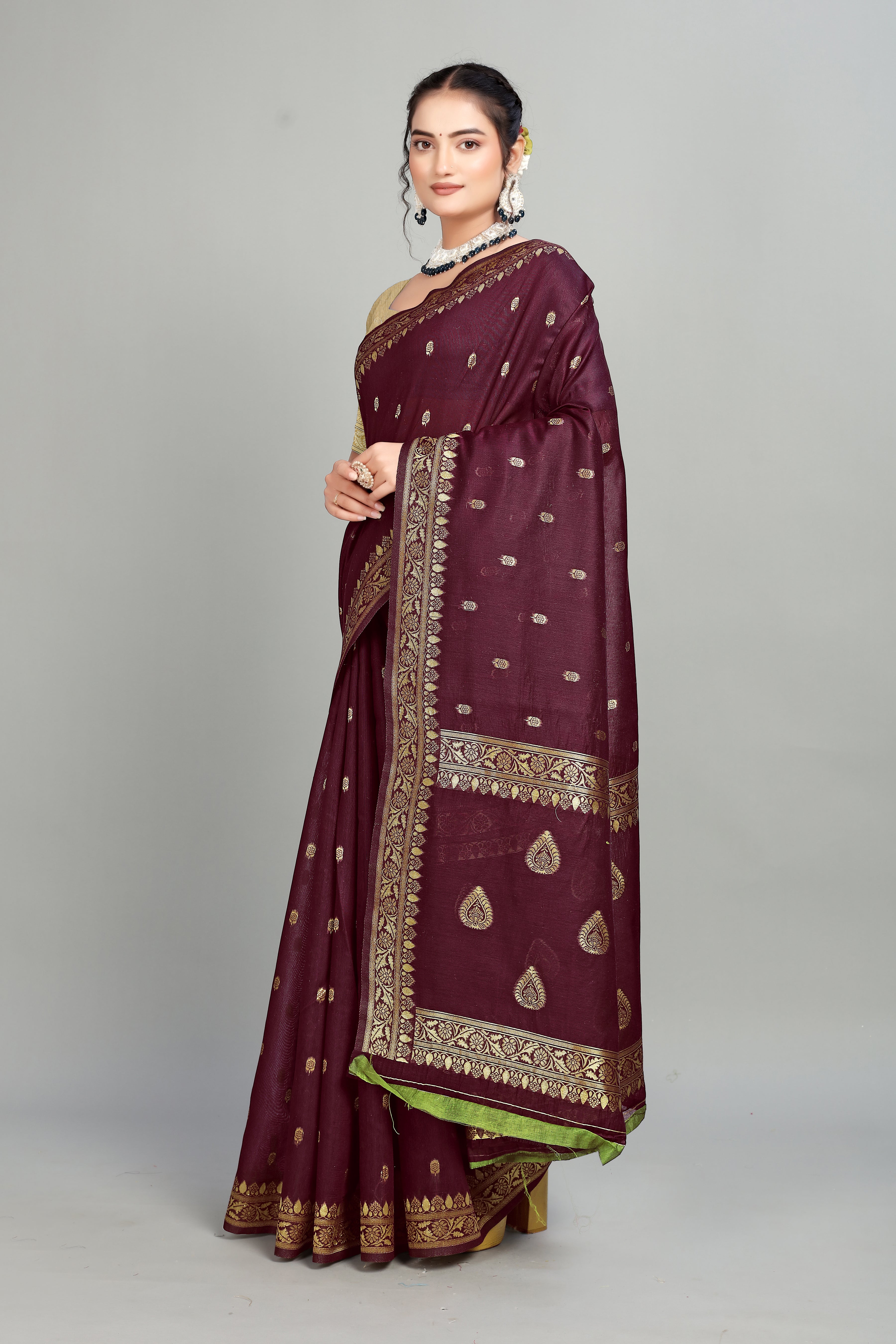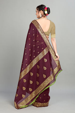 Maroon Soft Lilan Slab Butti Print Casual Wear Saree