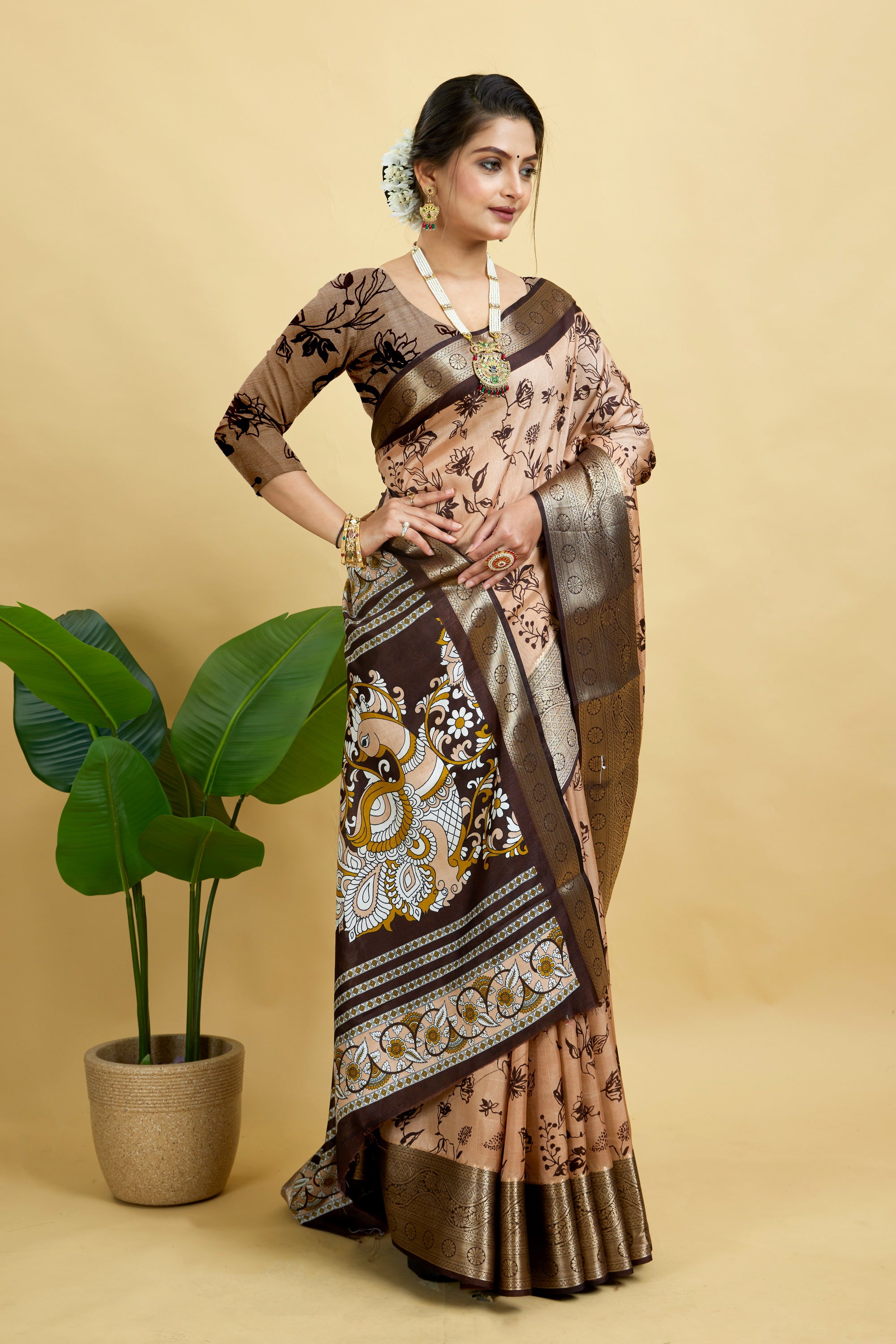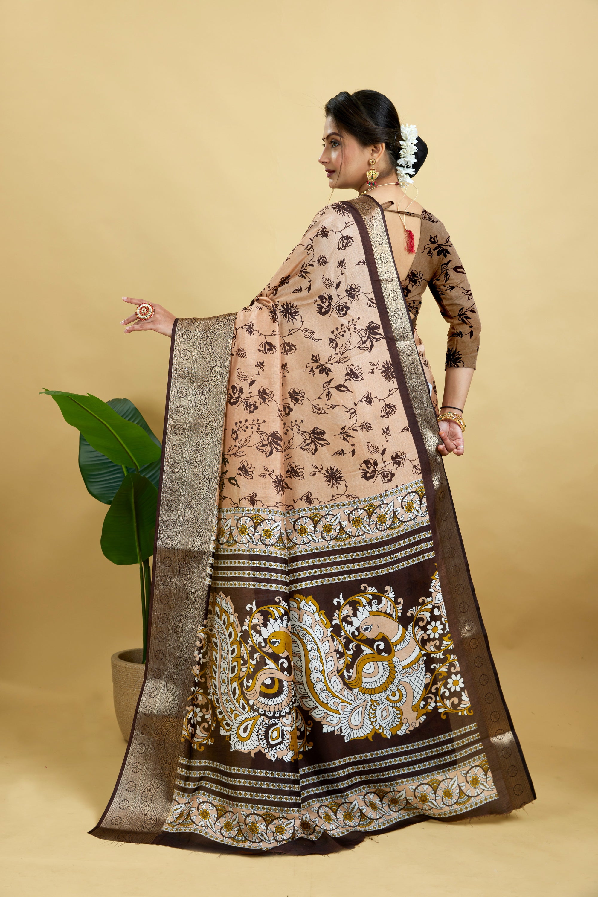 Peach Soft Dola Cotton Printed Saree