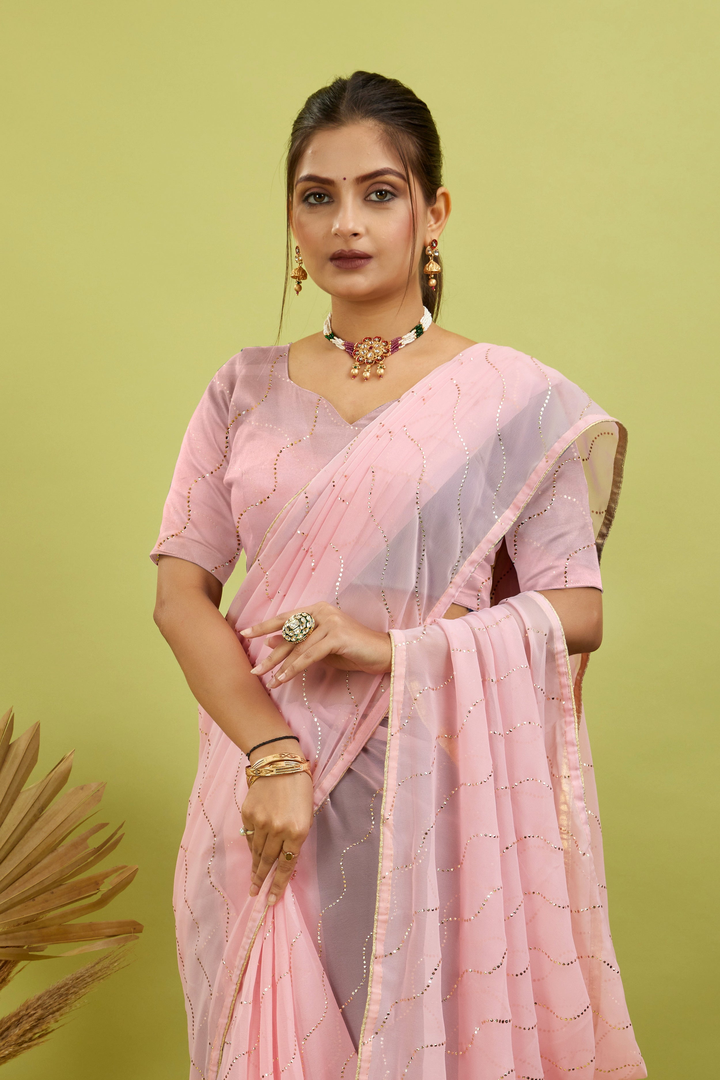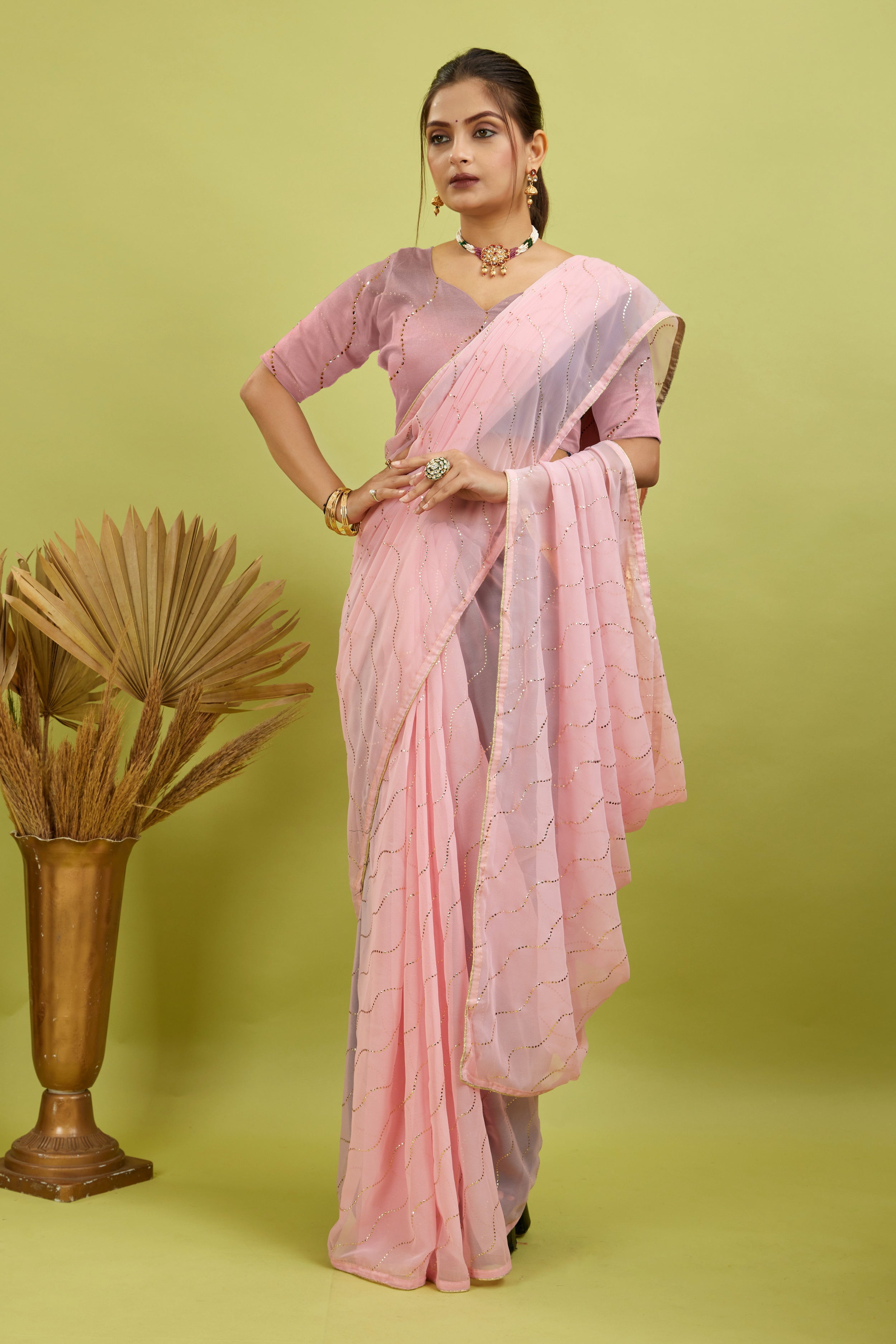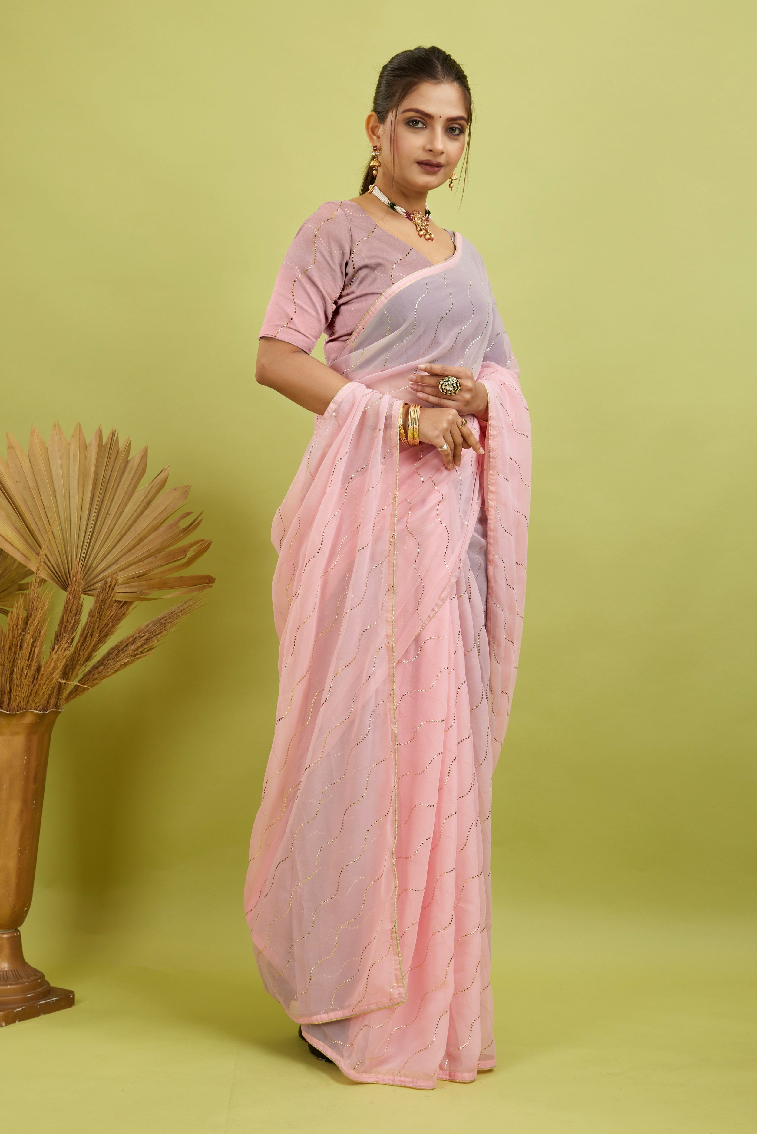 This georgette saree is perfect for any formal occasion. Made from high-quality material, it provides a luxurious and elegant look. Its lightweight and breathable fabric makes it comfortable to wear all day long. Enhance your traditional wardrobe with this timeless piece.