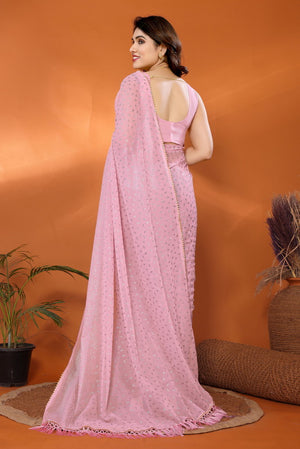 Pink Foil Work Soft Georgette Saree