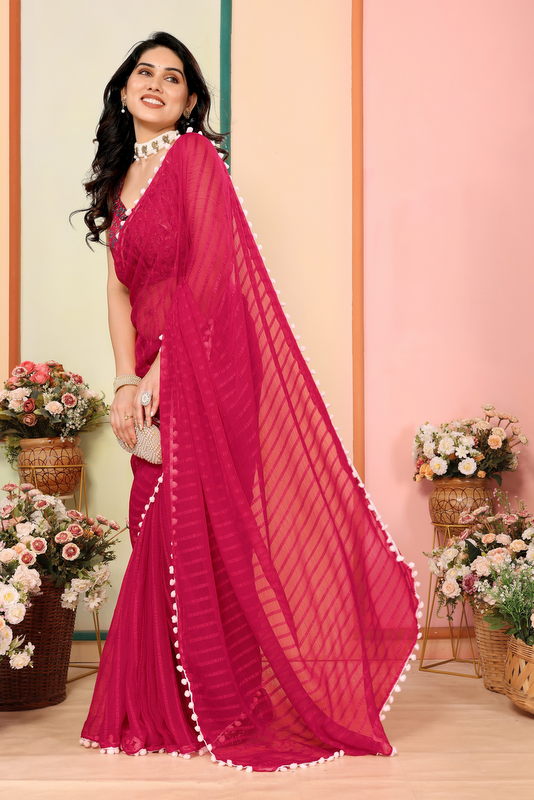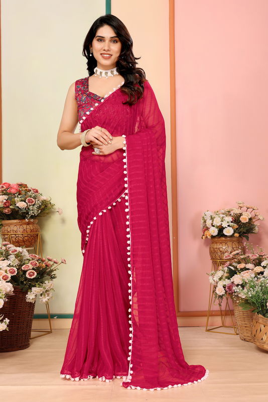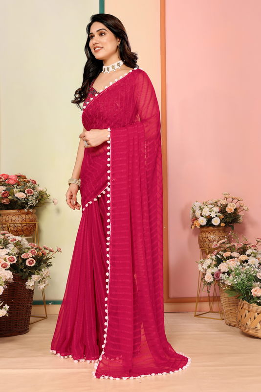 This georgette saree is perfect for any formal occasion. Made from high-quality material, it provides a luxurious and elegant look. Its lightweight and breathable fabric makes it comfortable to wear all day long. Enhance your traditional wardrobe with this timeless piece.