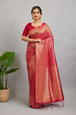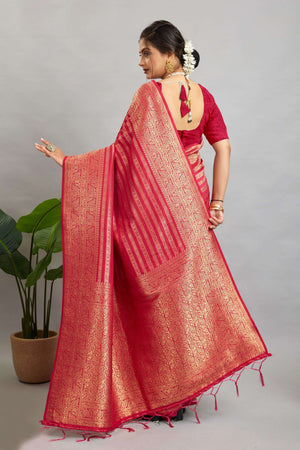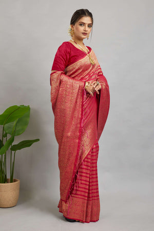Pink Woven Banarasi Khadi Silk Saree