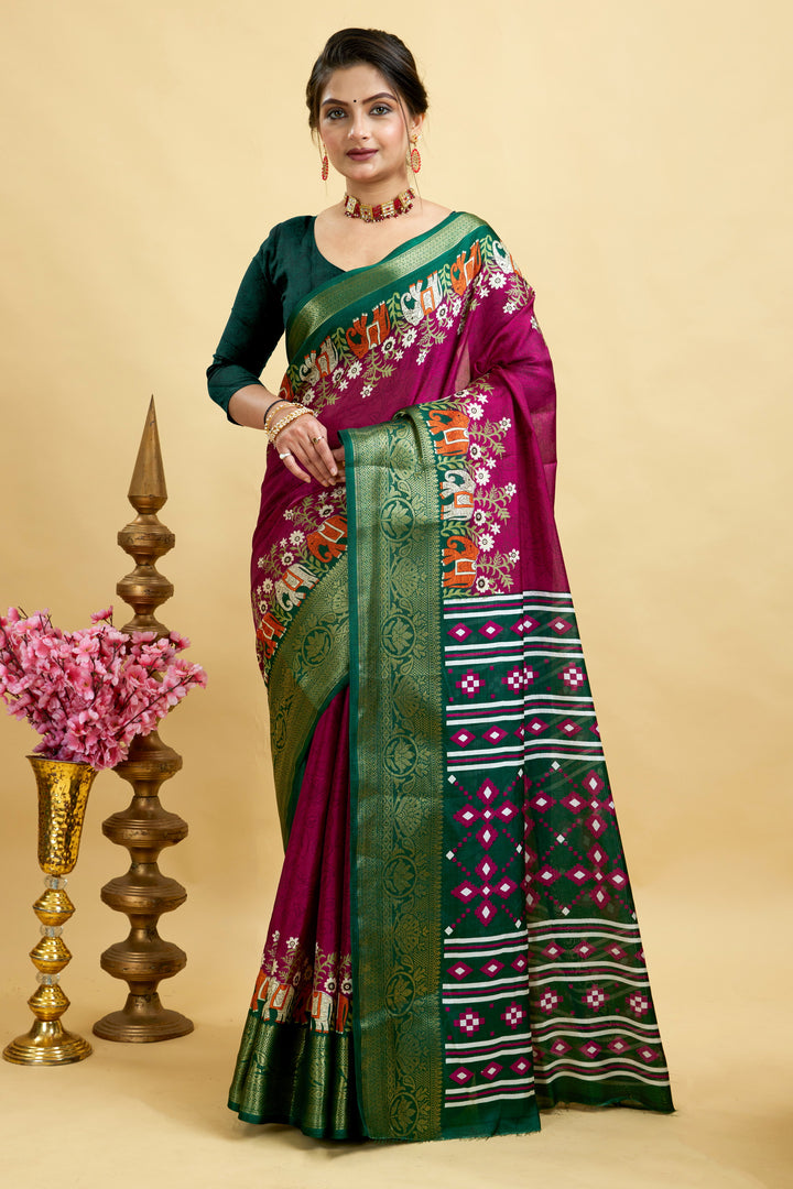 Presenting our enchanting soft Dola cotton saree, perfect for both intimate celebrations and grand Indian weddings. Lightweight and breathable, it feels gentle on the skin while adding charm and elegance to your festivities. Paired with a Jecard Kanjivaram blouse, this saree creates a sophisticated and cohesive look, making it an ideal choice for weddings, special occasions, and festive celebrations.