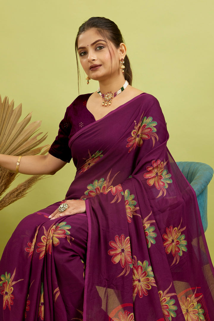 Celebrate tradition with a modern touch with this Bright Moss Satin Patta Printed Saree. Crafted from premium Bright Moss Satin Patta fabric, it features a vibrant print enhanced with delicate zari work, offering a sophisticated and refined look. The matching blouse, made from the same high-quality fabric, ensures a seamless and polished ensemble. Perfect for formal occasions, festive celebrations, or special events, this saree combines elegance, comfort, and timeless style.