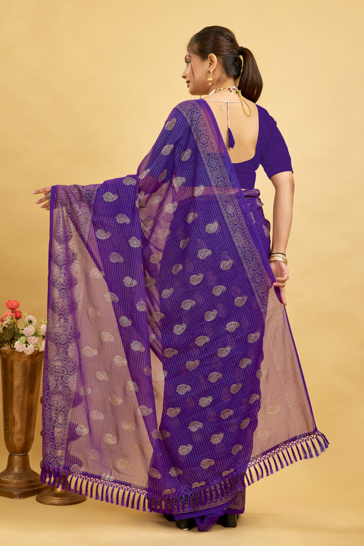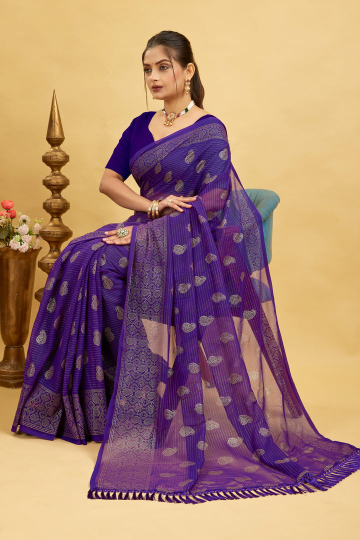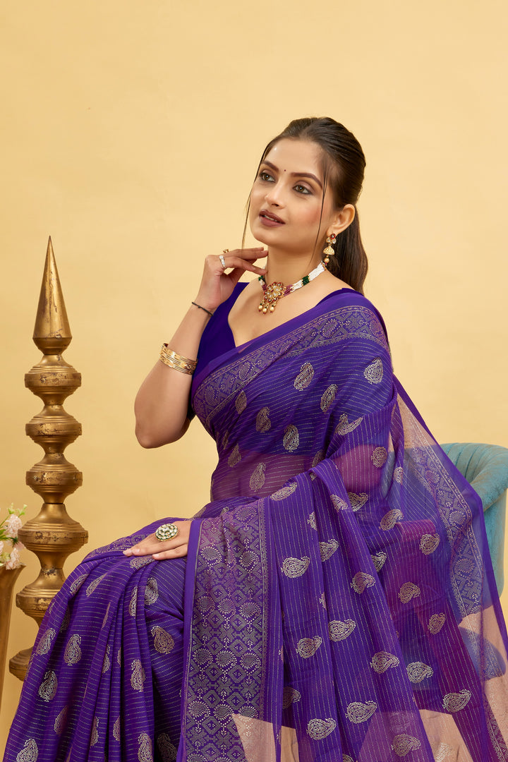 Step into sophistication with this elegant georgette saree, featuring a plain base enhanced with delicate foil work and accented with intricate zalar lace and subtle small lace detailing. The coordinating soft georgette blouse completes a seamless, refined look, making it perfect for formal occasions, festive celebrations, or special events. Lightweight and comfortable, this saree combines luxurious fabric with subtle embellishments, offering a timeless and graceful style.