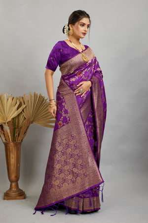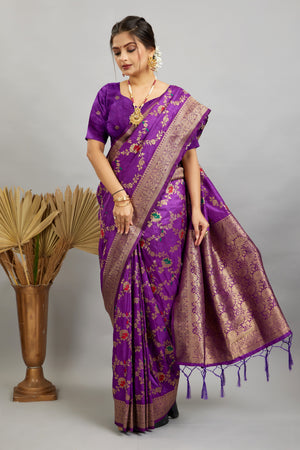 Purple Pure Banarasi Khadi Silk Saree