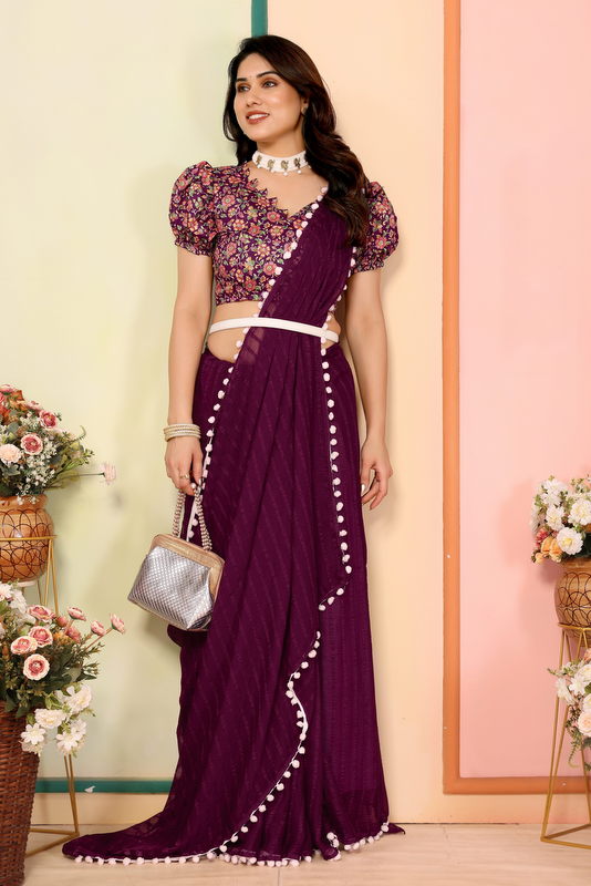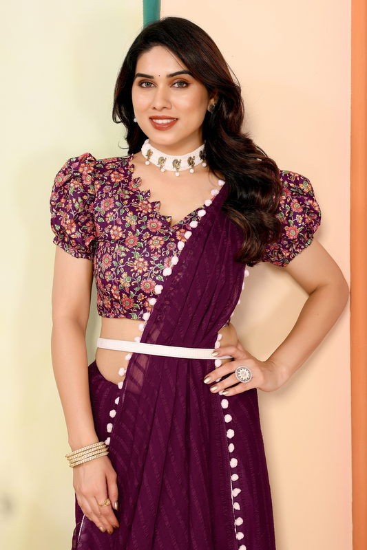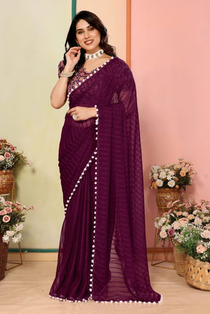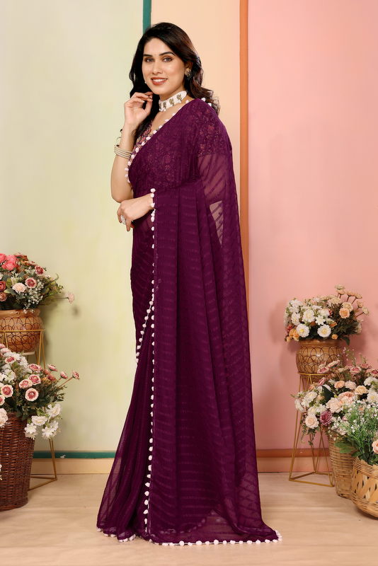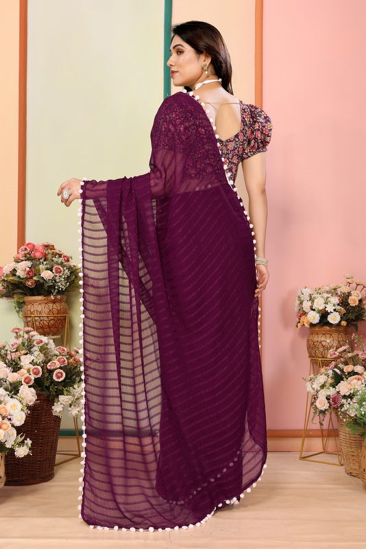 Purple Striped Georgette Saree
